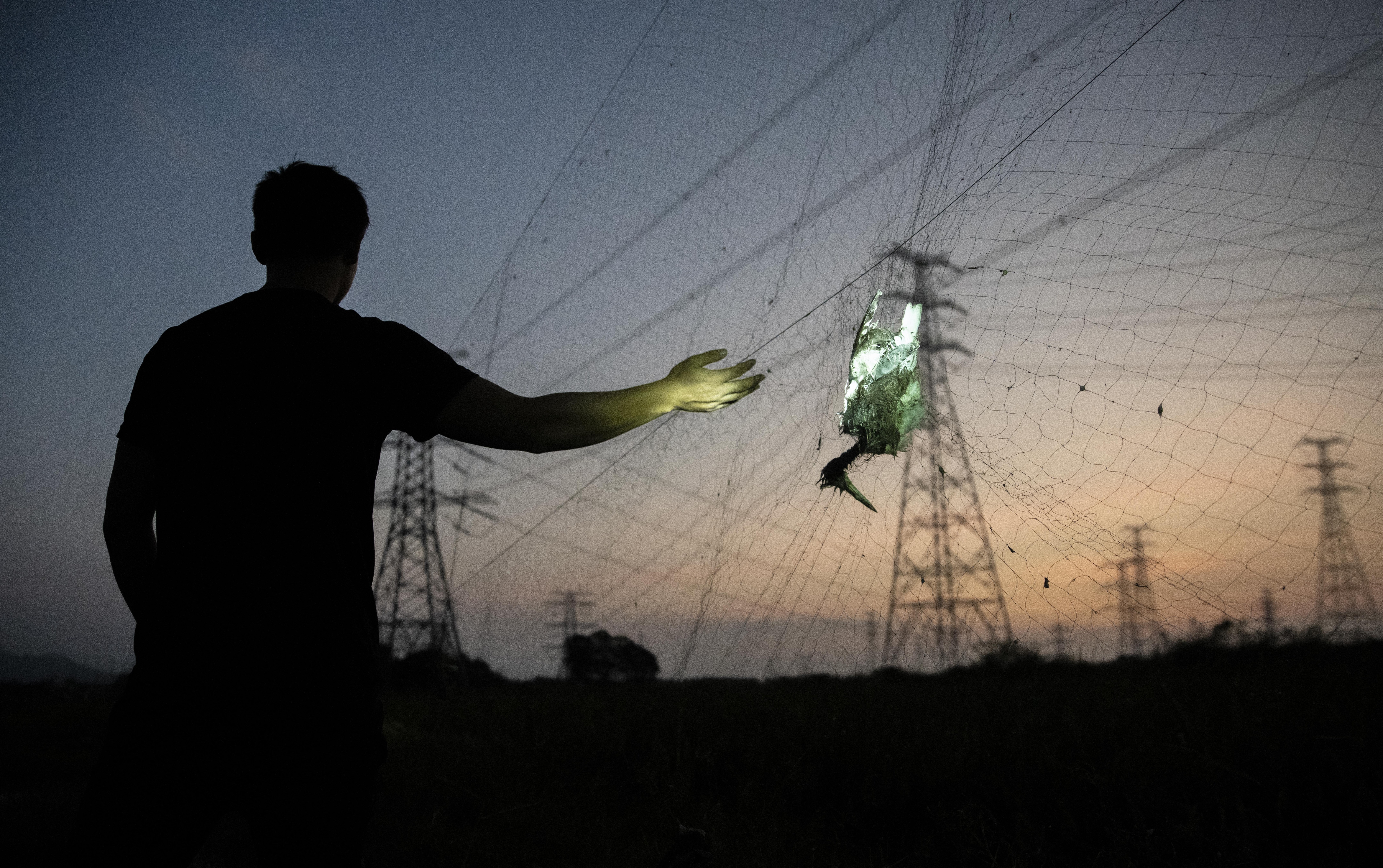 “落网的鸟,就像他们的‘果子’,每隔一段时间,他们就会来摘一次。”李洋告诉南方+记者,捕鸟者通常在夜间和清晨进场收网。