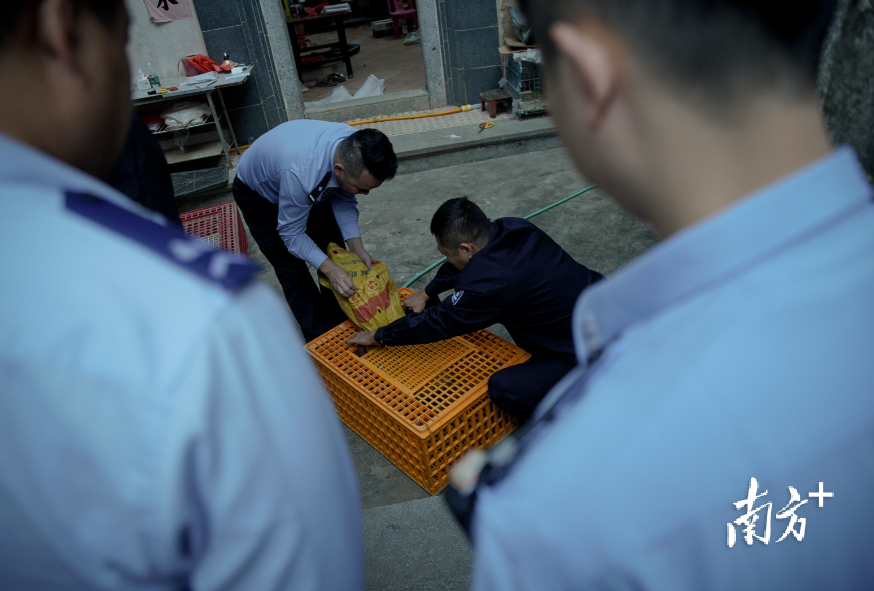 记者在现场看到,清晨7时许,仍有人提着麻袋前来送鸟,麻袋内鸟类经护鸟志愿者初步辨认为苦恶鸟和黑水鸡,皆属“三有”保护动物,其中黑水鸡属广东省重点保护动物。