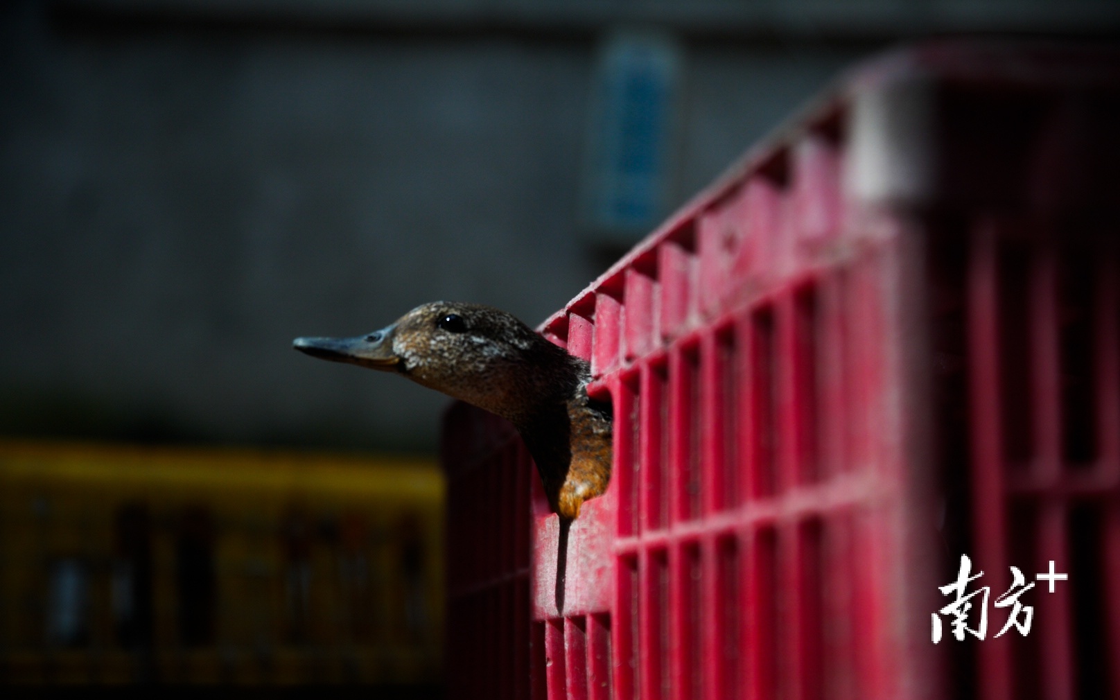 11月13日,汕尾潭西镇,一处藏有大量野生鸟类的民房中,被捕获的野生鸟类将头探出笼子。