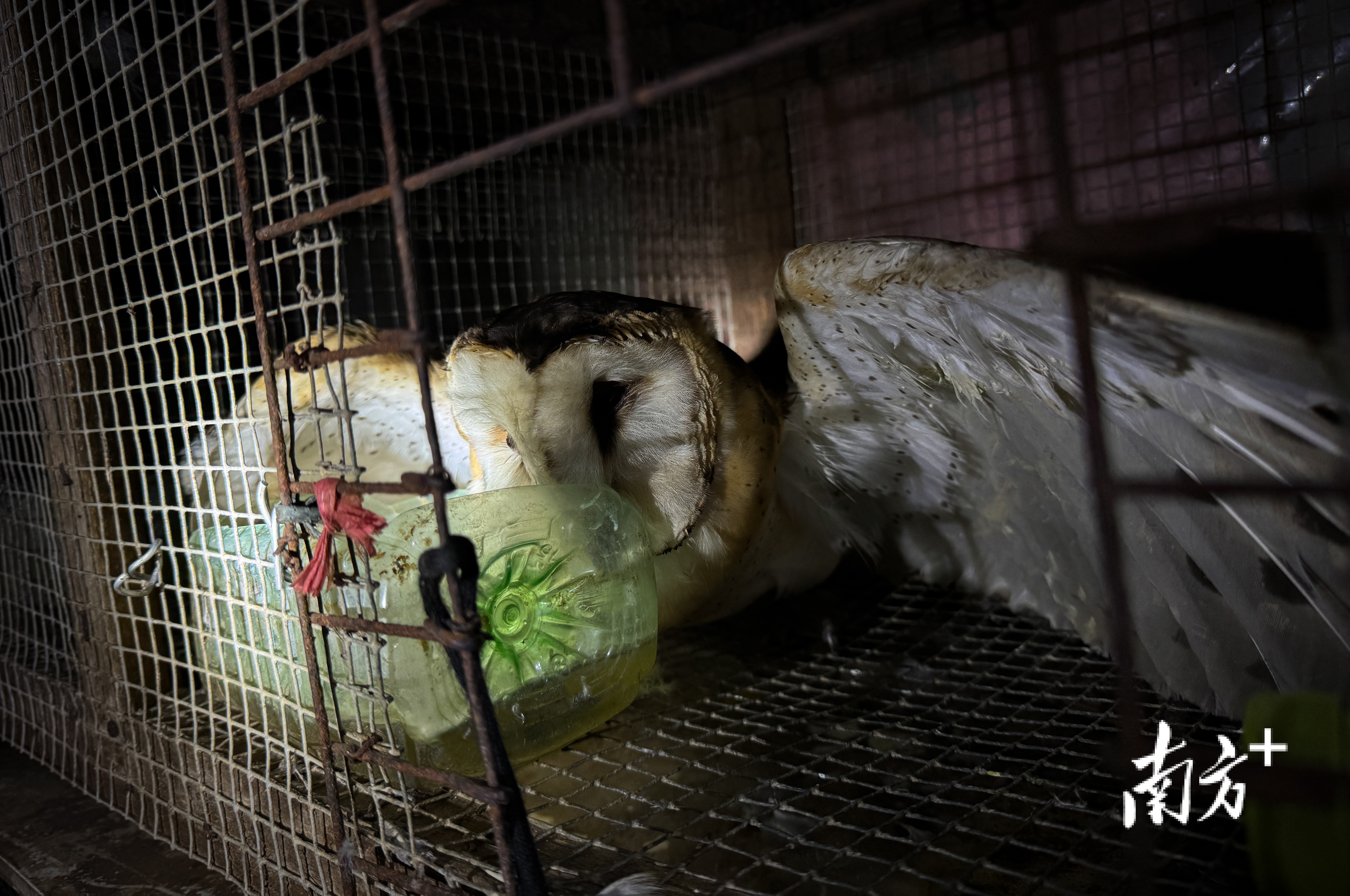 11月13日上午,在陆丰市潭西镇一处民房内,执法人员发现铁笼中有一只猛禽已没有了生命迹象。