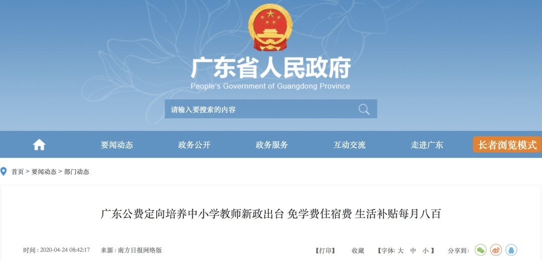 据了解,2020年,广东省教育厅等4部门联合印发了《关于公费定向培养粤东粤西粤北地区中小学教师的实施办法》。