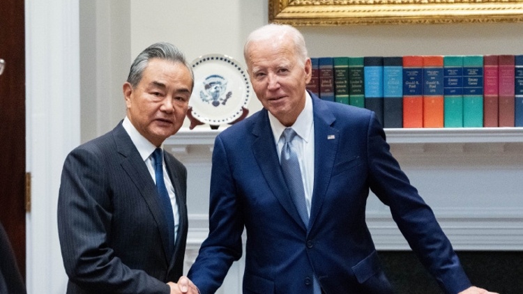 当地时间10月27日,美国总统拜登在白宫会见到访的中共中央政治局委员、外交部长王毅。