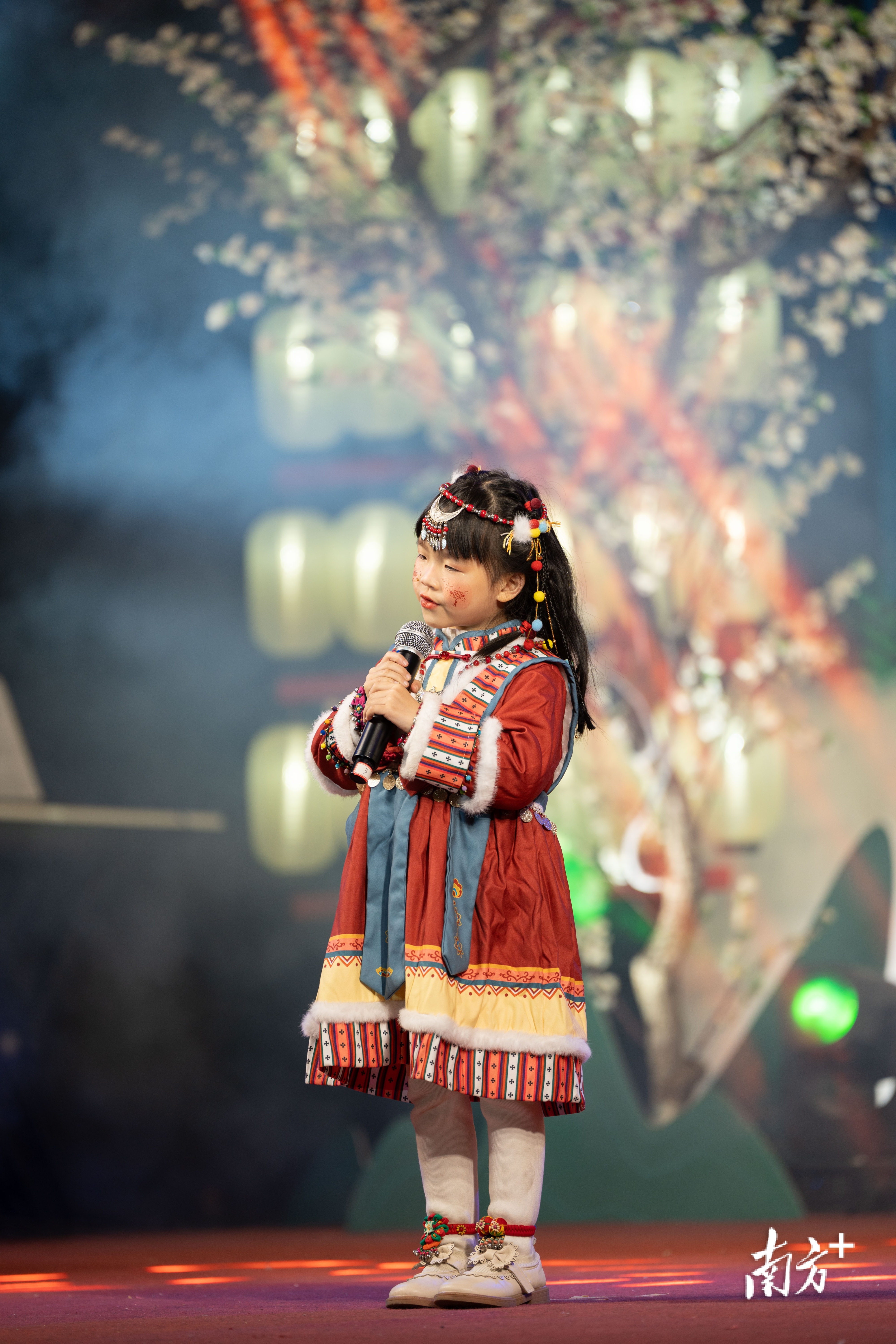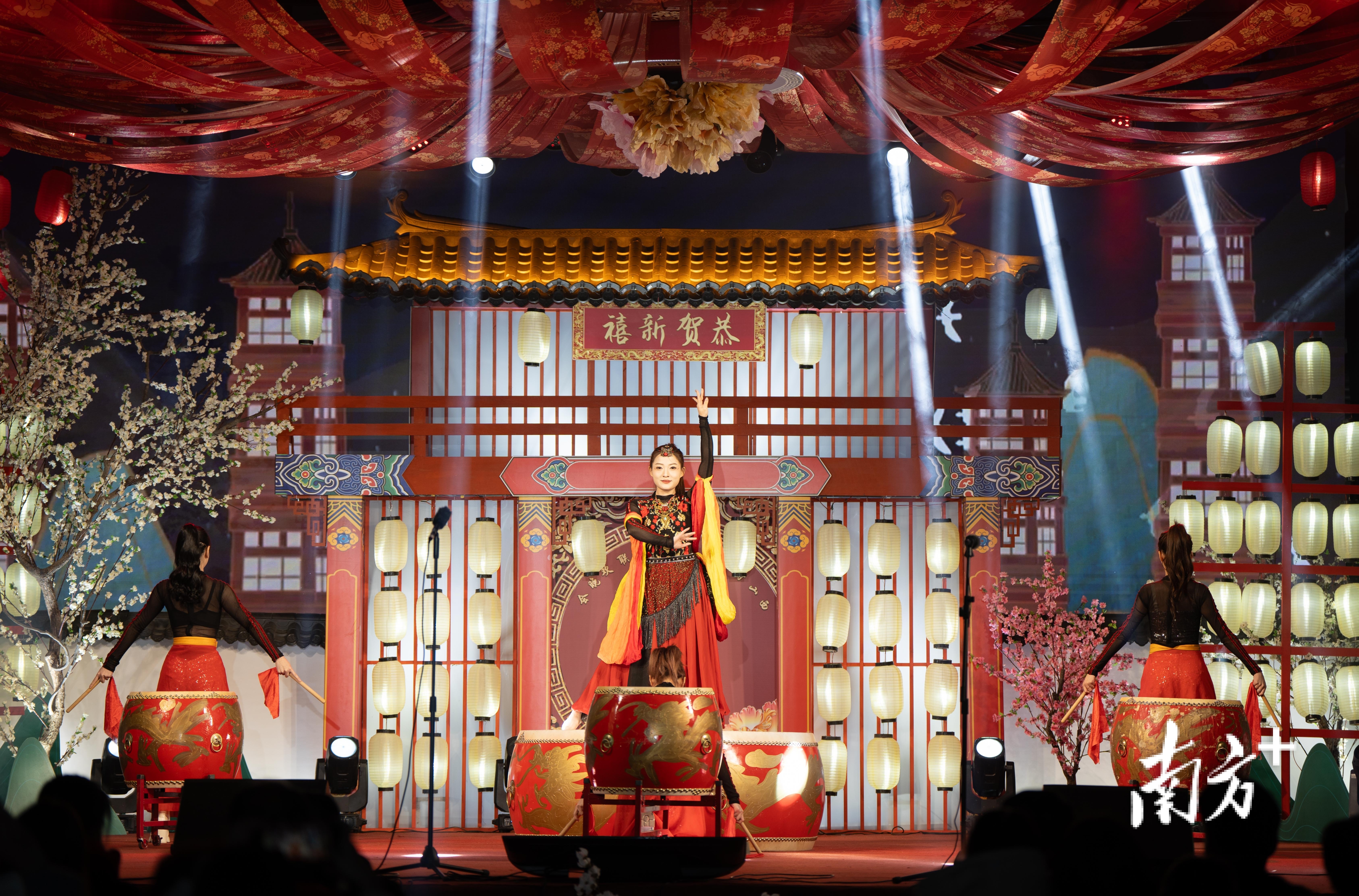 台上台下还有不少年轻的面孔。今年大一的郑栅妮,寒假回乡后,就和弟弟妹妹一起加入了锣鼓队,带头组织训练,并挑选更新潮的服装道具。“想让锣鼓表演更‘燃’、更多样!”她说。