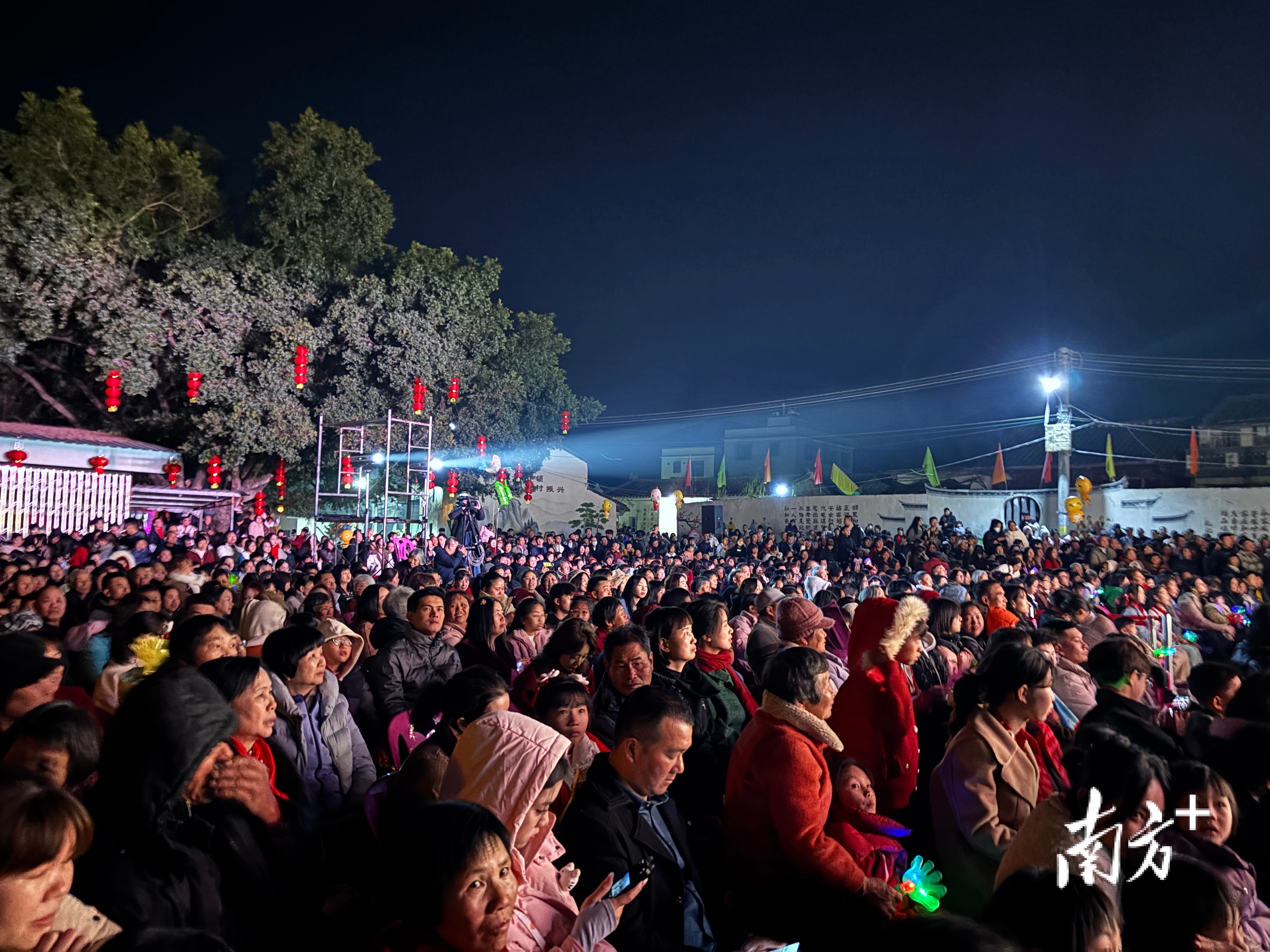 随着主持人的报幕声,潮州大锣鼓、广场舞、潮剧、独唱等节目轮番登场,男女老少拿出“看家本领”全情表演。现场人山人海,舞台被围得水泄不通,台下不时传来掌声和叫好声,整个村庄沉浸在一片欢乐喜庆的海洋中。