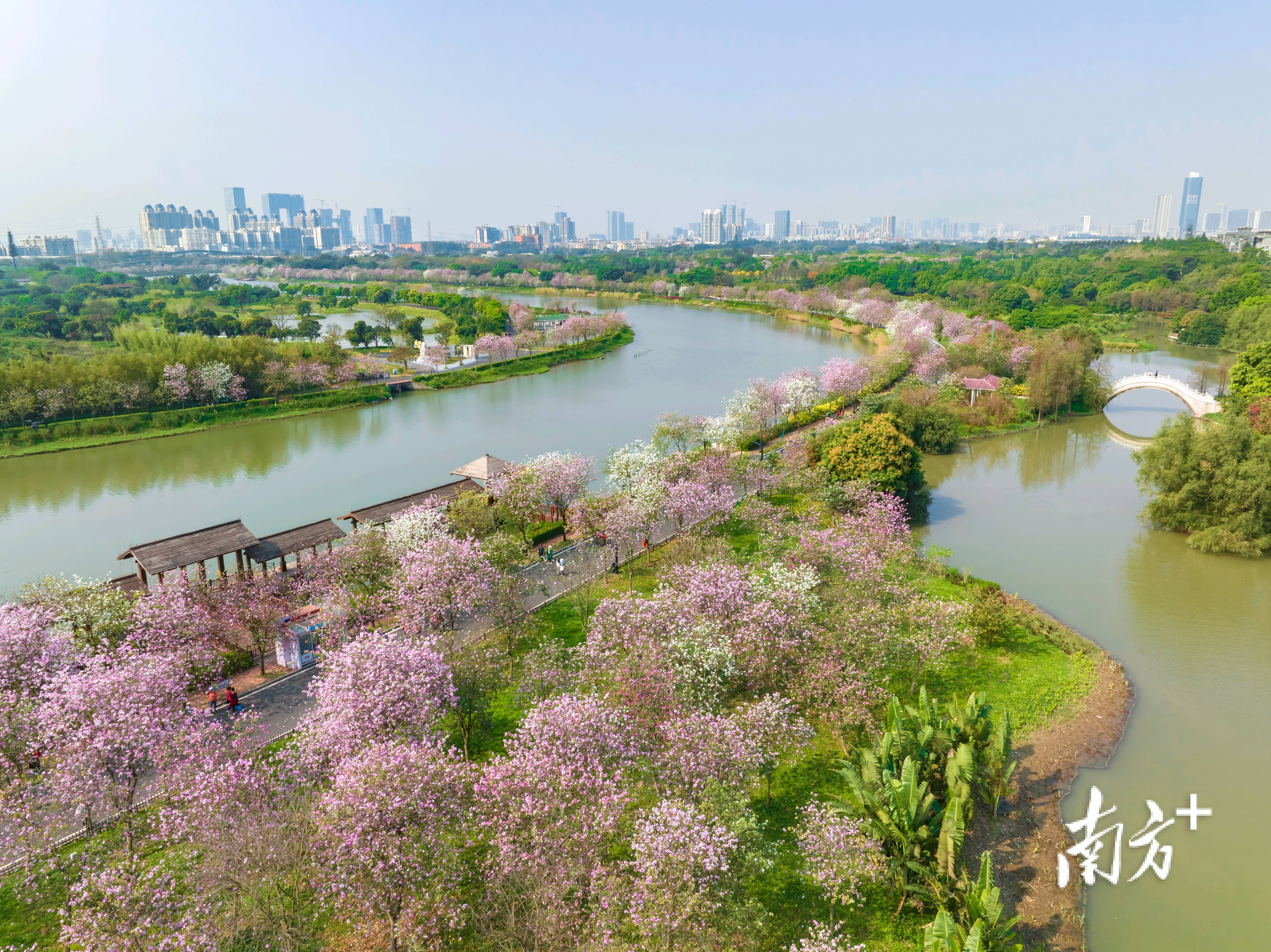 同时,海珠湿地的数片花海正绿意萌发。据悉,海珠湖14000平方米的波斯菊花海已在一月中旬迎来初花期,湿地一期近20000平方米的虞美人花海也将于月底绽放。