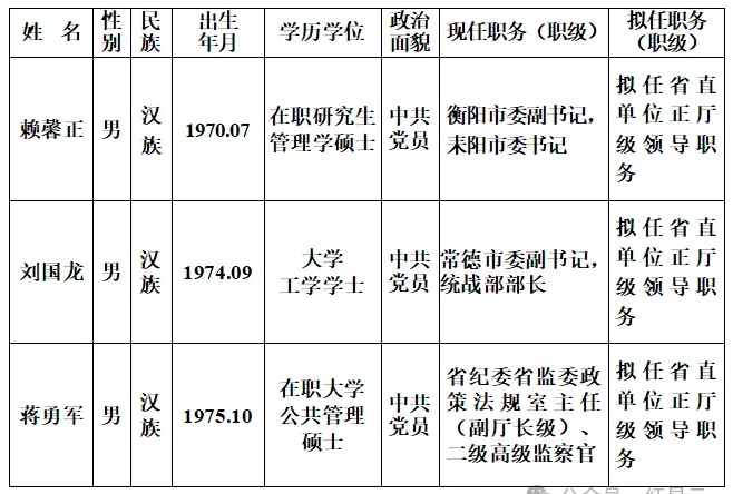 12月13日,中共湖南省委组织部发出《省委管理干部任前公示公告》。
