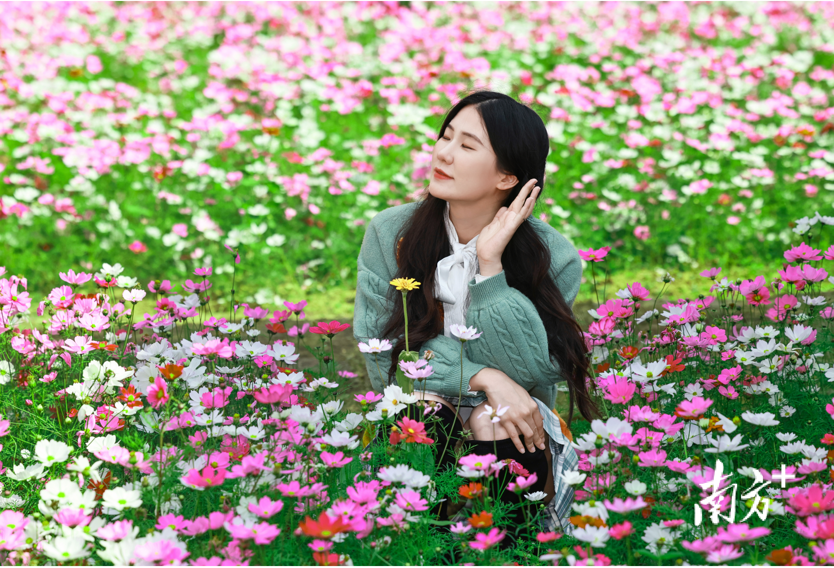 园内还有大片粉白相间的格桑花