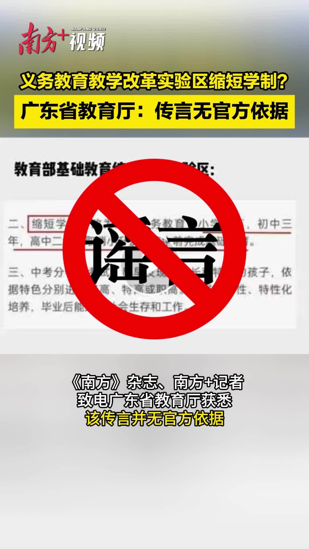 义务教育教学改革实验区缩短学制?广东省教育厅:传言无官方依据
