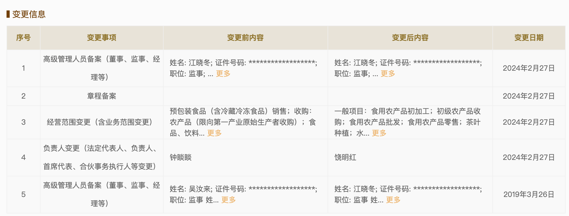 除此以外,浙江农夫实业发展有限公司还变更了经营范围变更。