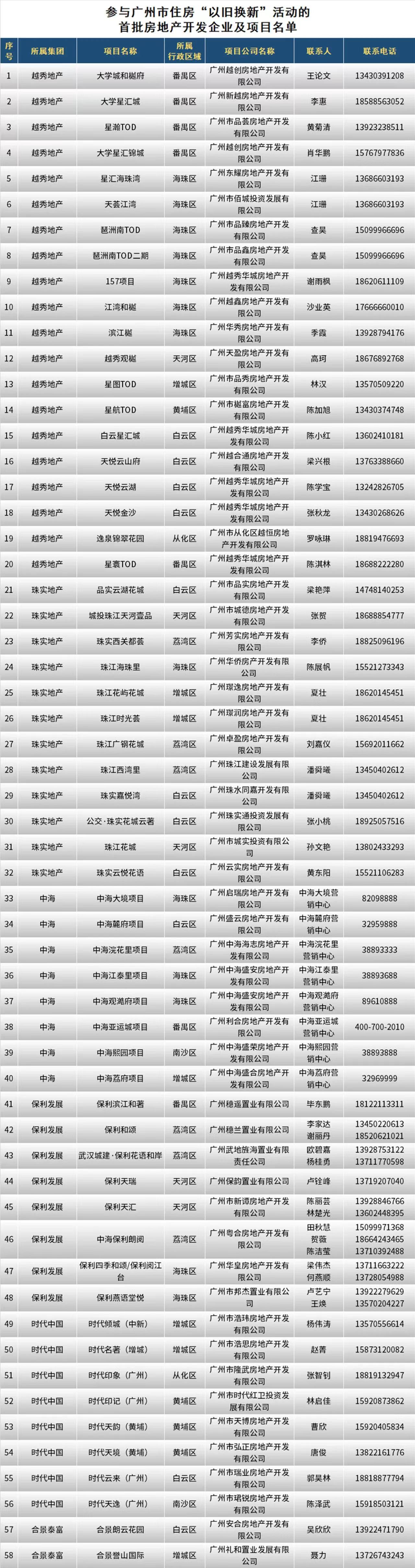 从122个参与“以旧换新”的楼盘项目名单来看,它们分布在全市各区,单价也从2万元至10万+不等,分布区域之广、产品类型之盛,可以满足多元消费者的换新购房需求。广州市房地产行业协会相关负责人介绍,本次参与活动的房地产开发企业参与报名积极,名单中以国央企项目占多数,也有不少民营企业项目参与,参与活动的中介机构也实力雄厚,平日占市场交易份额比较重,是推动一二手市场加快循环的主力军。