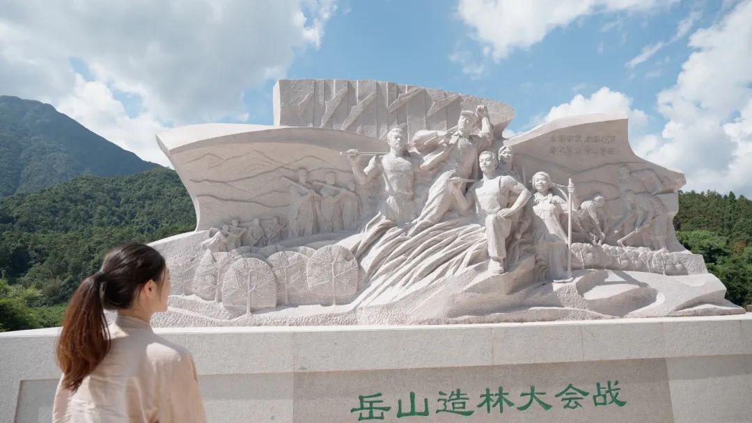 翱翔的飞鸟描绘如今岳山优越的自然环境。