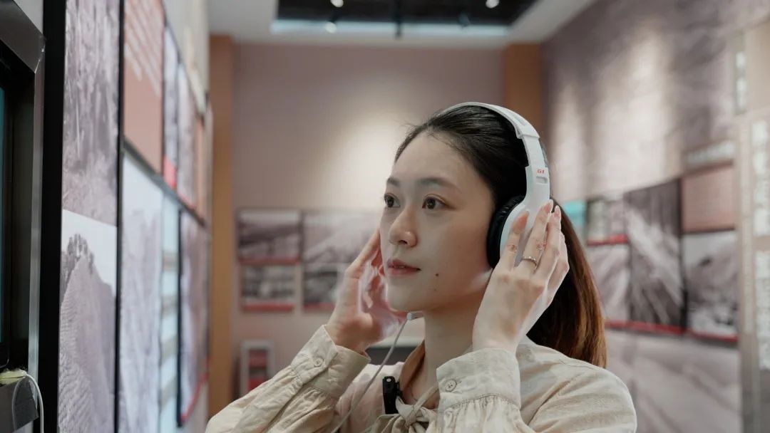 △展厅可以现场聆听不同方言的岳山战歌。廖文奕 摄