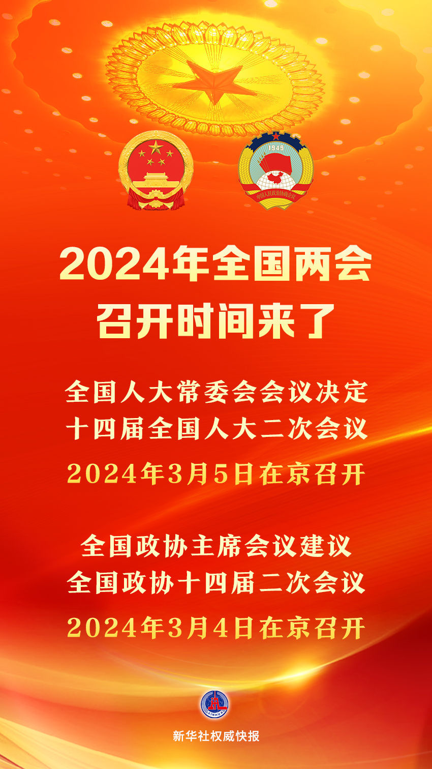 全国人大常委会会议12月29日表决通过了关于召开十四届全国人大二次会议的决定。根据决定,十四届全国人大二次会议于2024年3月5日在北京召开。政协第十四届全国委员会日前召开主席会议,建议全国政协十四届二次会议于2024年3月4日在北京召开。 编辑 张梦圆 订阅后可查看全文(剩余80%)