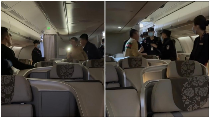 经济舱内,被带出来的短发女士也与周边乘客发生了口角。坐在短发女士附近的一名乘客告诉读特记者:“有人指责她,她就反驳说‘我们以前都这样’‘人分三六九等’‘你们谁也不敢动我们’等,特别理直气壮。”