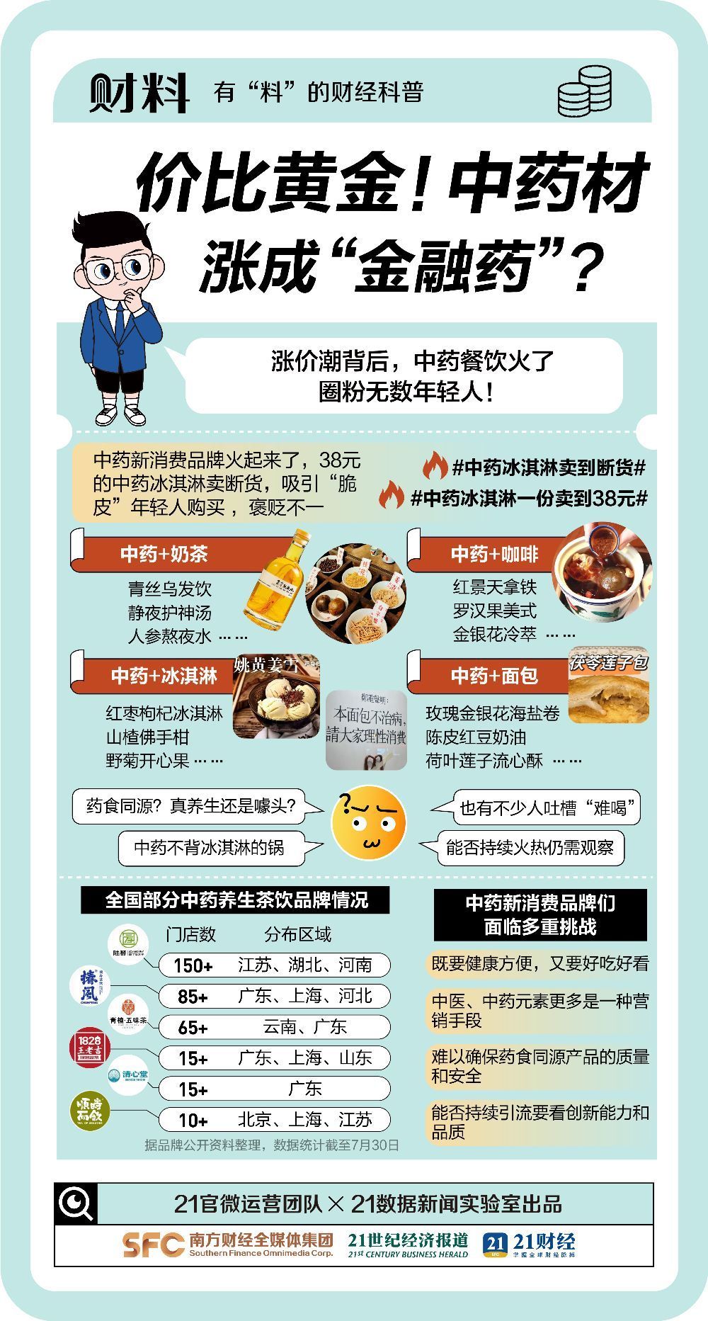 在各类中药材价格飙升的同时,中药材花式消费也火了,圈粉无数年轻人!近期#38元的中药冰淇淋卖断货 #话题一度冲上热搜,中药冰淇淋、中药咖啡、中药奶茶等新品种吸引“脆皮”年轻人购买,这股新中式消费浪潮能持续吗?