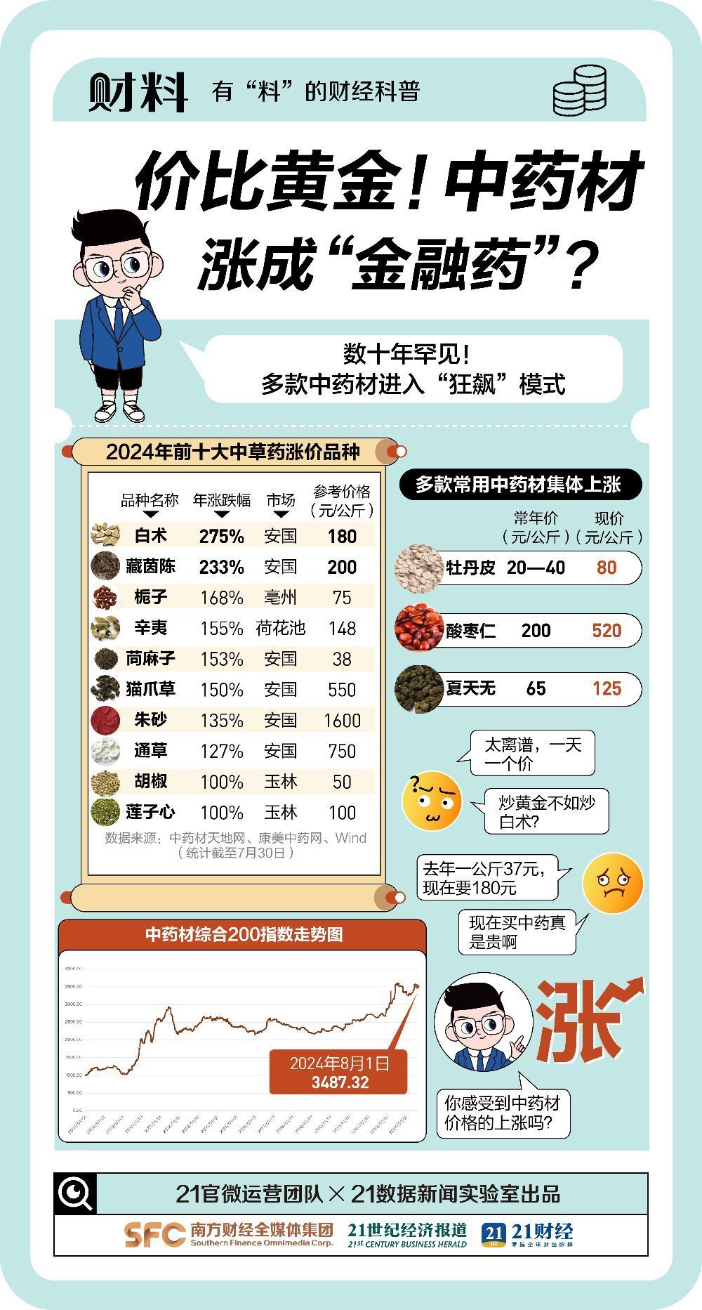 中药材正在经历“几十年一遇”的涨价潮,持续涨价、减产断货的传闻不绝于耳。中药材为何涨成“金融药”?涨价潮有何影响?本期《财料》跟你扒一扒中药材涨价潮背后的真相,疯狂背后的推手到底是什么?