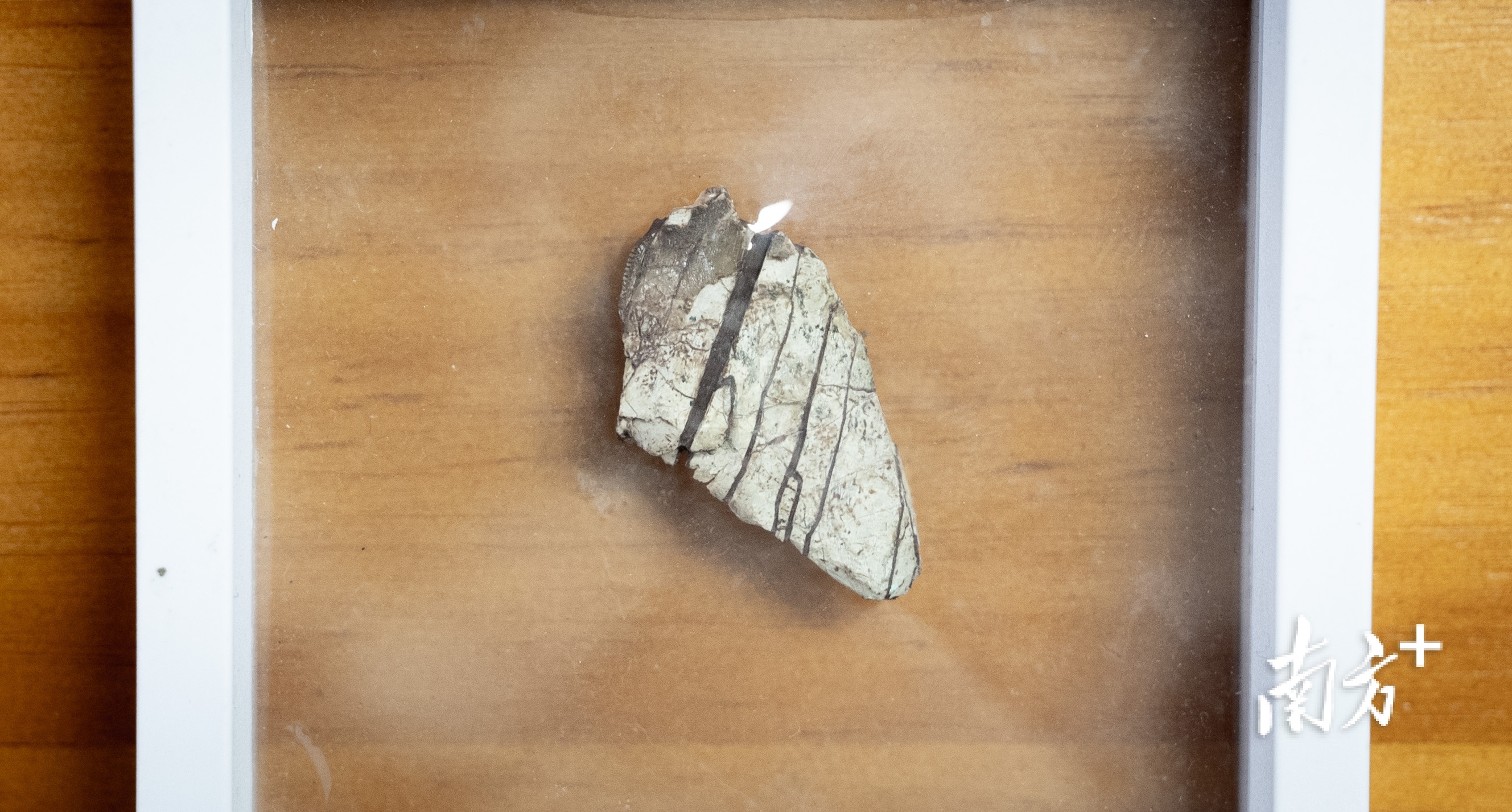 今年5月中旬,曾强向记者展示了这枚在广州市区发现的恐龙牙齿化石。这是一枚仅有3.3厘米长的牙齿碎片,但却在历史的长河中存在了数千万年。