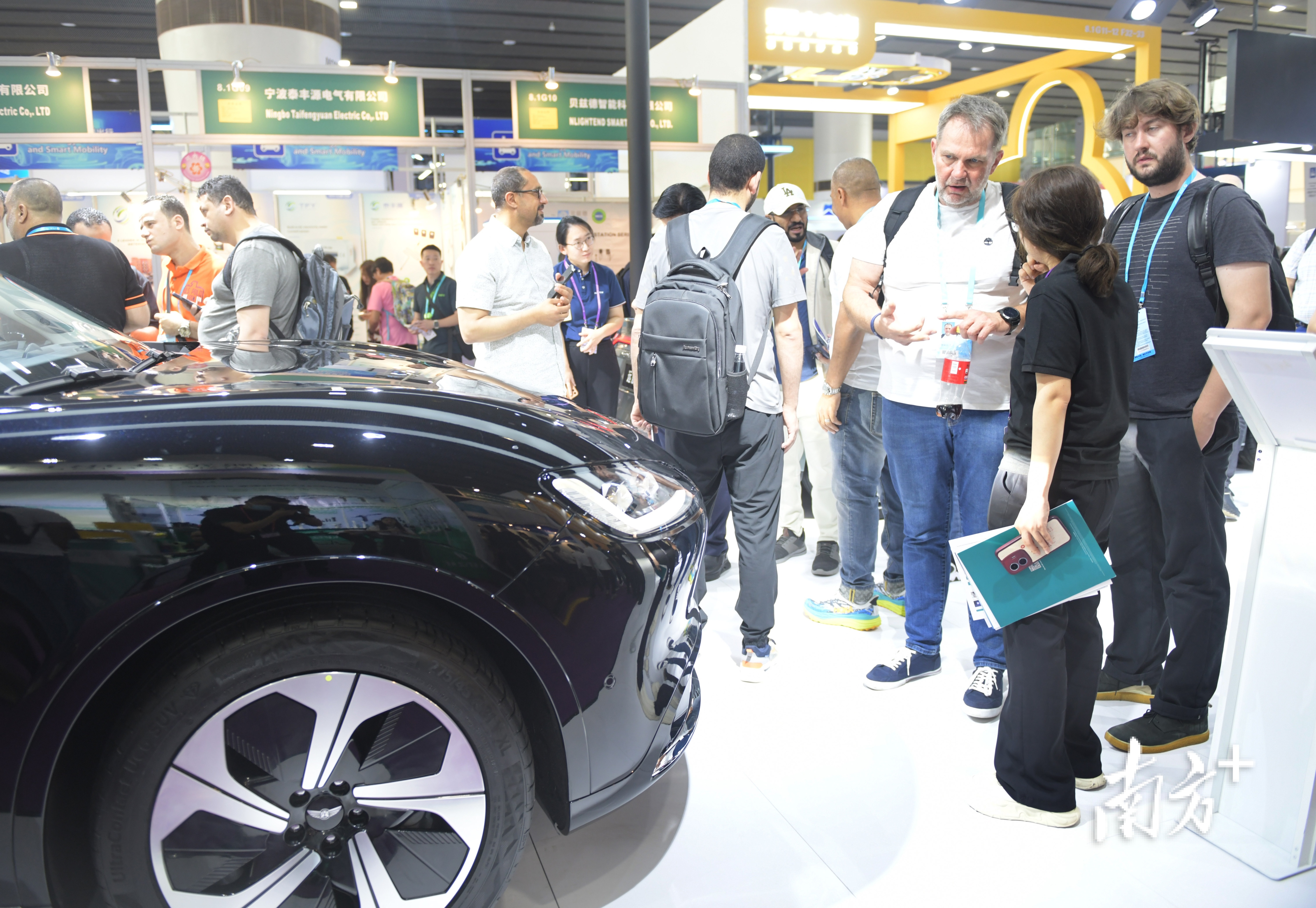 采购商在第135届广交会上了解新能源汽车。图源:新华社