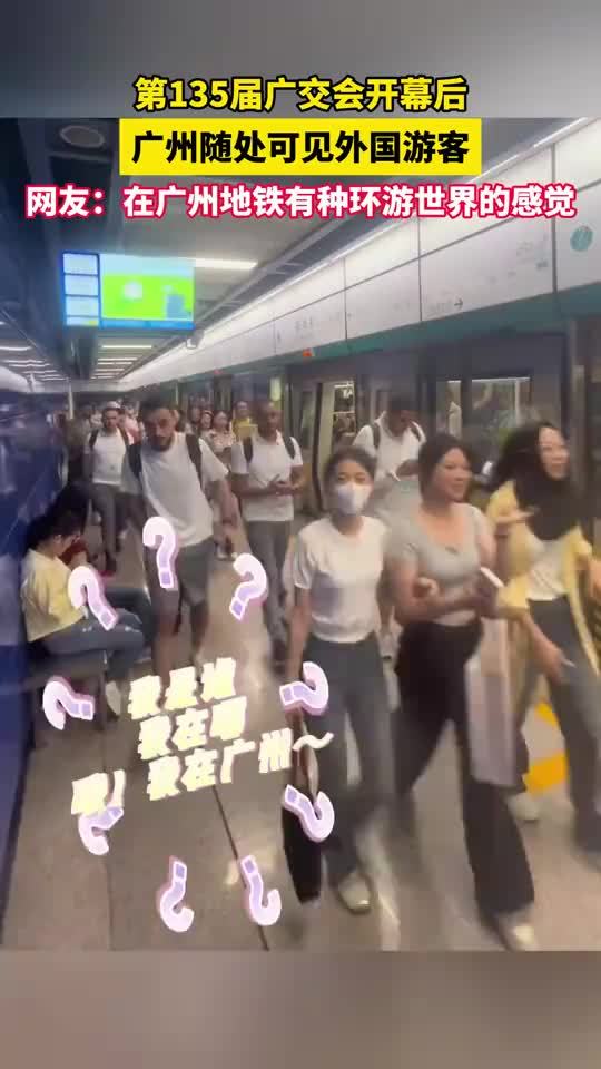 人在广州,刚下地铁,有种环球旅行的即视感!第135届广交会开幕后,广州地铁8号线挤满了外国人。