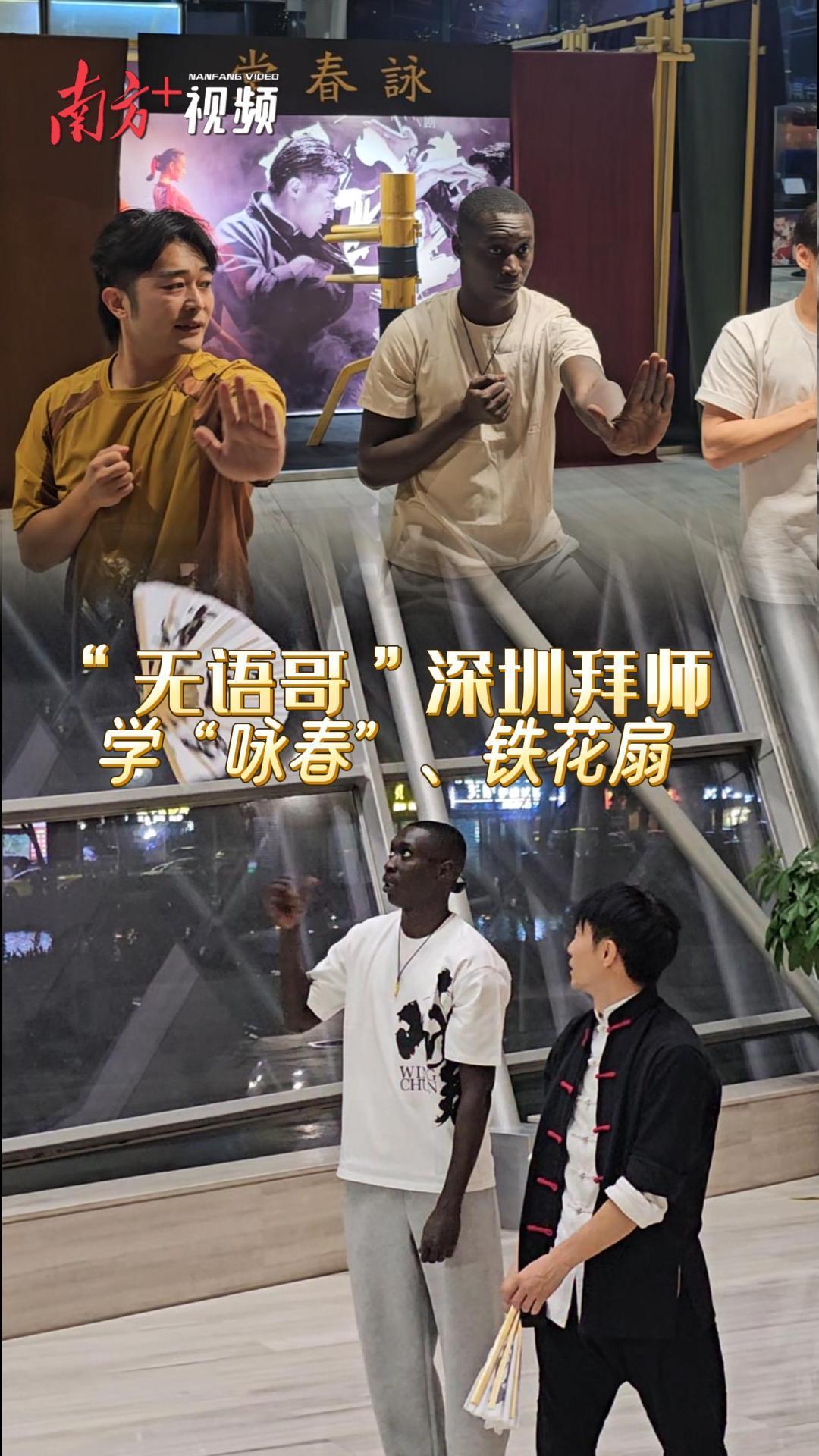 9月18日,全网粉丝超2.59亿的网红“无语哥”(Khaby Lame)在深圳开启其为期2天的探索之旅。当天晚上,他来到深圳保利剧院,探班深圳原创舞剧“咏春”剧团班底。“咏春”剧团为“无语哥”献上了一段表演,一招一式、武舞融合、干净利落的动作让“无语哥”看得入神。在“咏春”专业舞蹈老师的指点下,“无语哥”先是在木人桩上练习“咏春”的招式,随后学习了舞蹈动作,最后与“咏春”剧团成员共同顺利完成一段表演展示。