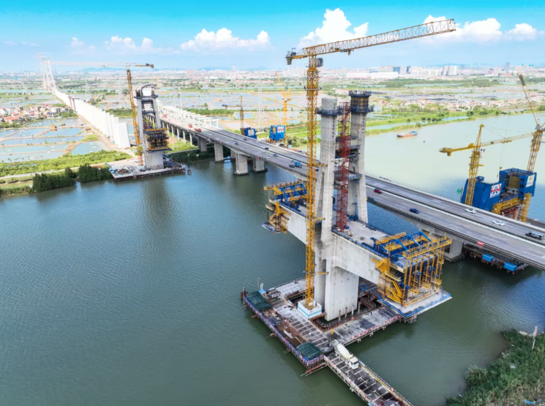 近日,深江铁路全线控制性工程——小榄水道特大桥16号墩主塔顺利封顶,标志着深江铁路建设取得阶段性突破,为后续主梁施工奠定坚实基础。