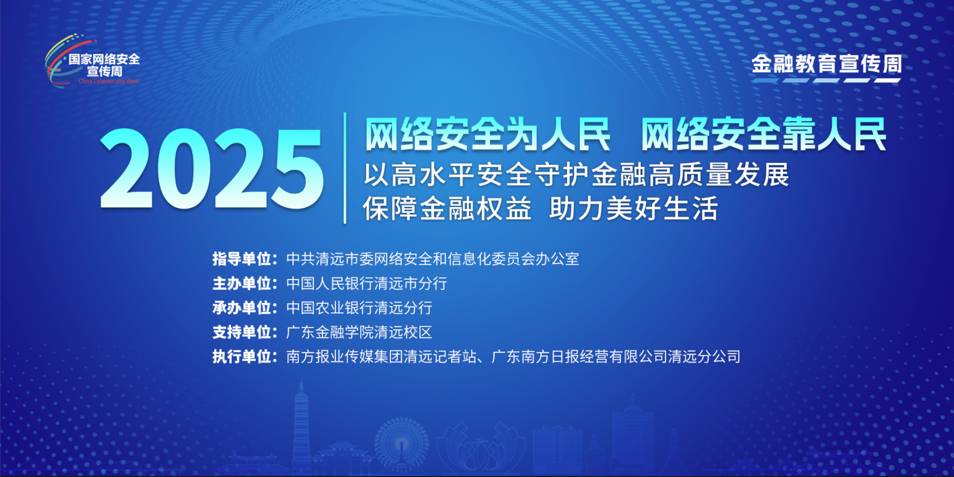 9月18日上午,2025年清远市网络安全宣传周“金融日”活动将在广东金融学院清远校区举行,活动主题为“网络安全为人民,网络安全靠人民--以高水平安全守护金融高质量发展,保障金融权益,助力美好生活”。