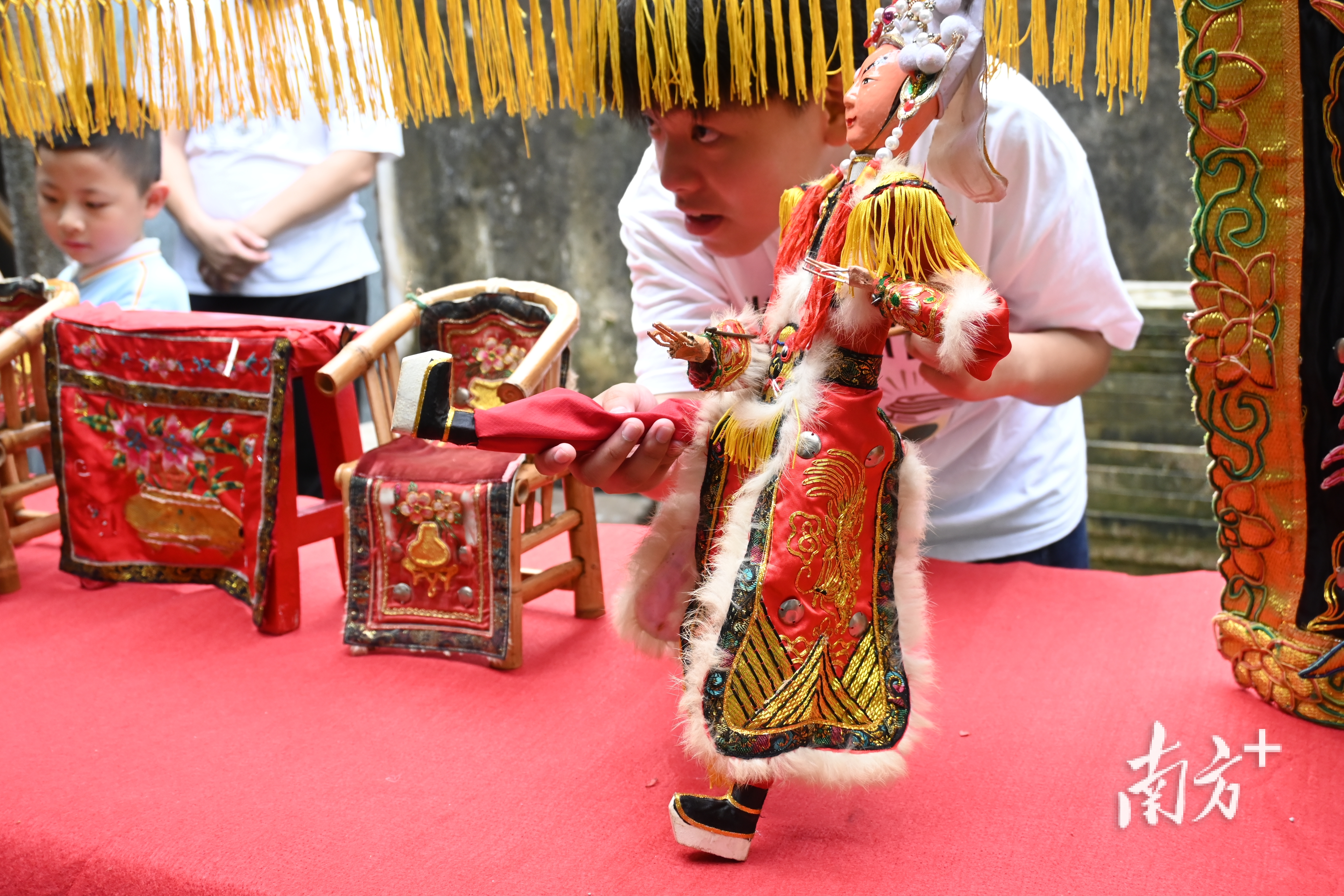 不仅如此,他们还专程前往汕头市澄海区,与当地新艺术木偶剧团交流。看不同流派的木偶戏表演,听剧团分享“木偶+科技”的创新经验,“法润凤城”实践队员的思路愈发清晰:“可以结合短视频传播,也能和旅游景区合作,让铁枝木偶从‘庙会戏台’走进更多人的视野。”