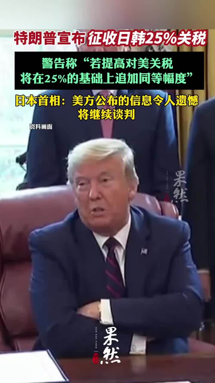 美国总统特朗普宣布对韩国和日本征收25%的关税
