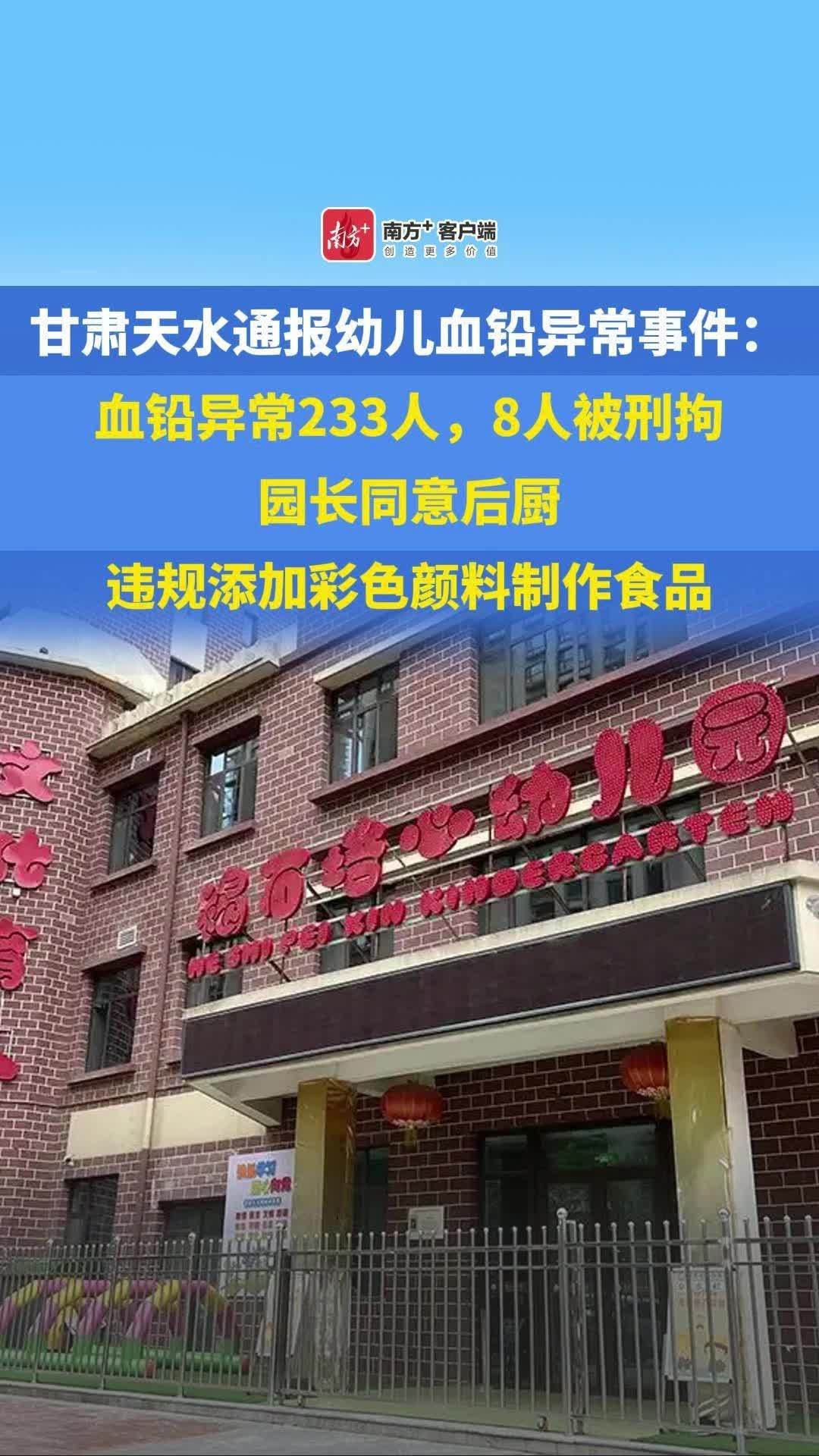 甘肃天水通报幼儿血铅异常事件:血铅异常233人,8人被刑拘
