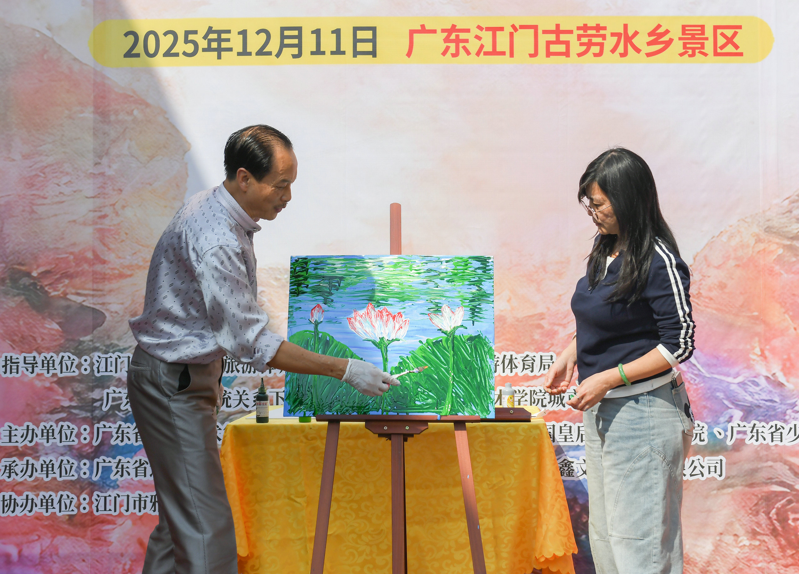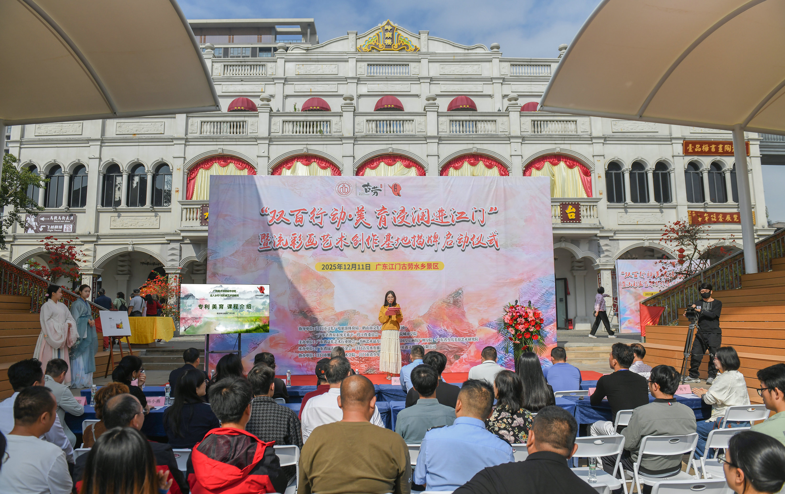 鹤山市文化广电旅游体育局局长麦和幸表示,古劳水乡不仅是岭南水乡文化的瑰宝,更将成为美育浸润城乡的实践基地。“此次流彩画艺术创作基地的落成,标志着‘双百行动’在江门的深度落地,未来将为乡村美育、文旅融合提供全新范本,推动艺术研学与基层美育的有机衔接,以创新模式扫除‘艺盲’,激发乡村文化活力。”