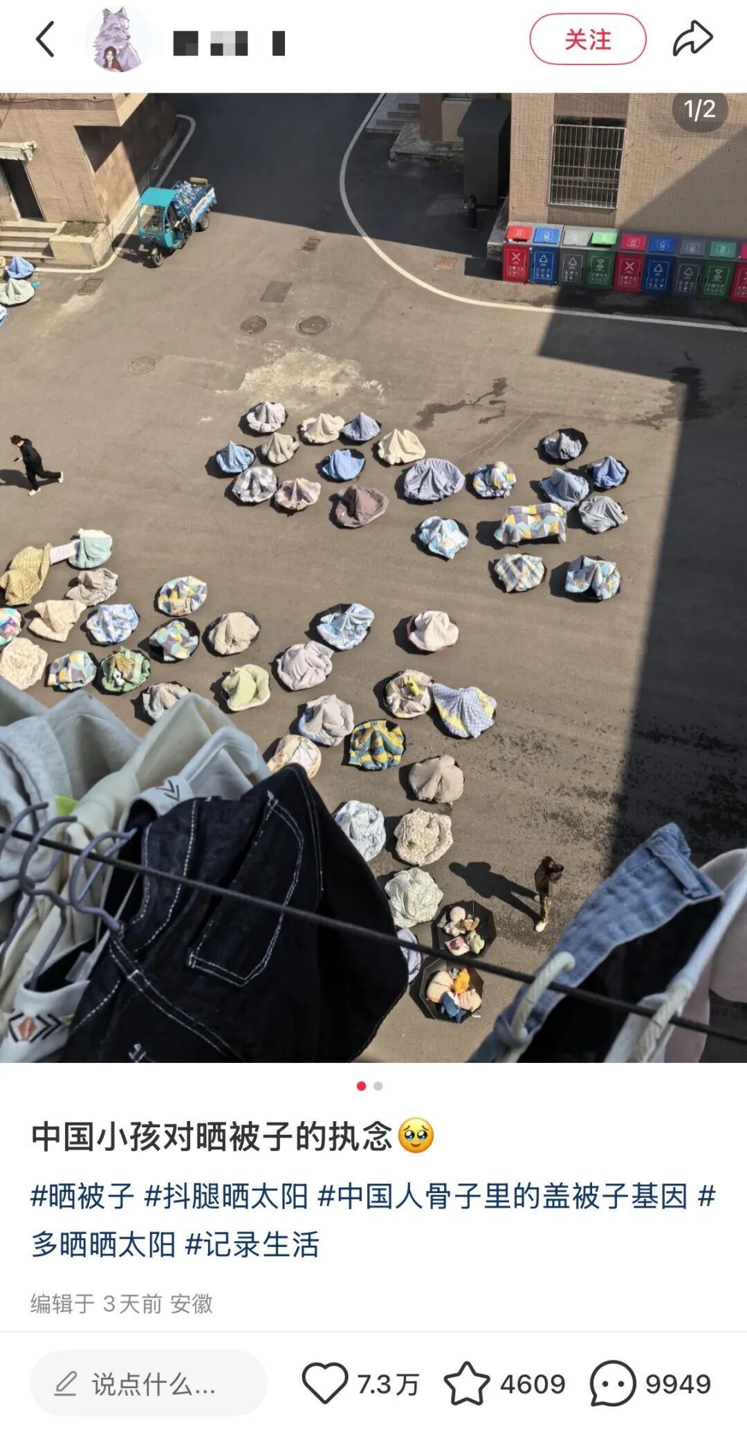 久存不用或新购的被褥,用前都要进行一次晾晒,这样可以保证被子的干燥卫生。正在使用的被褥,建议每周晾晒一次即可。