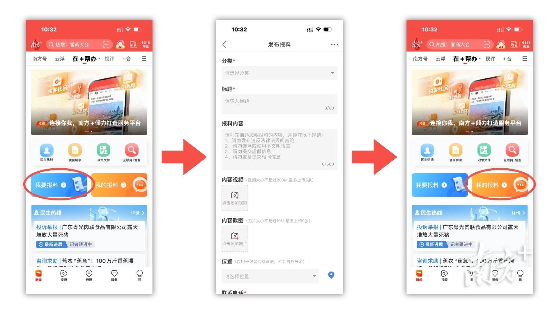 目前,该平台聚焦咨询求助、建言献策、投诉举报三大核心功能,为市民提供指尖上的便民服务。只需打开南方+客户端,上传文字、图片或视频,说明诉求,提交审核被采用后,便有记者为你跟进或传达,实时跟踪办理进度。