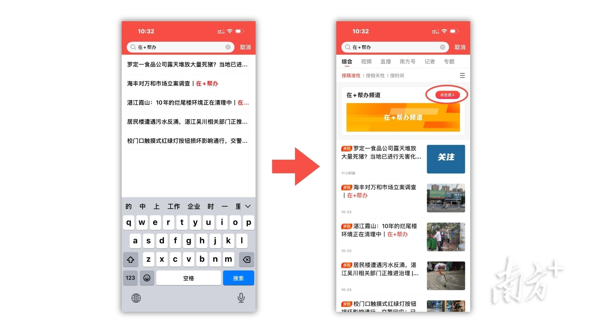 1.首先下载南方+客户端,在南方+首页搜索“在+帮办”进入专属频道