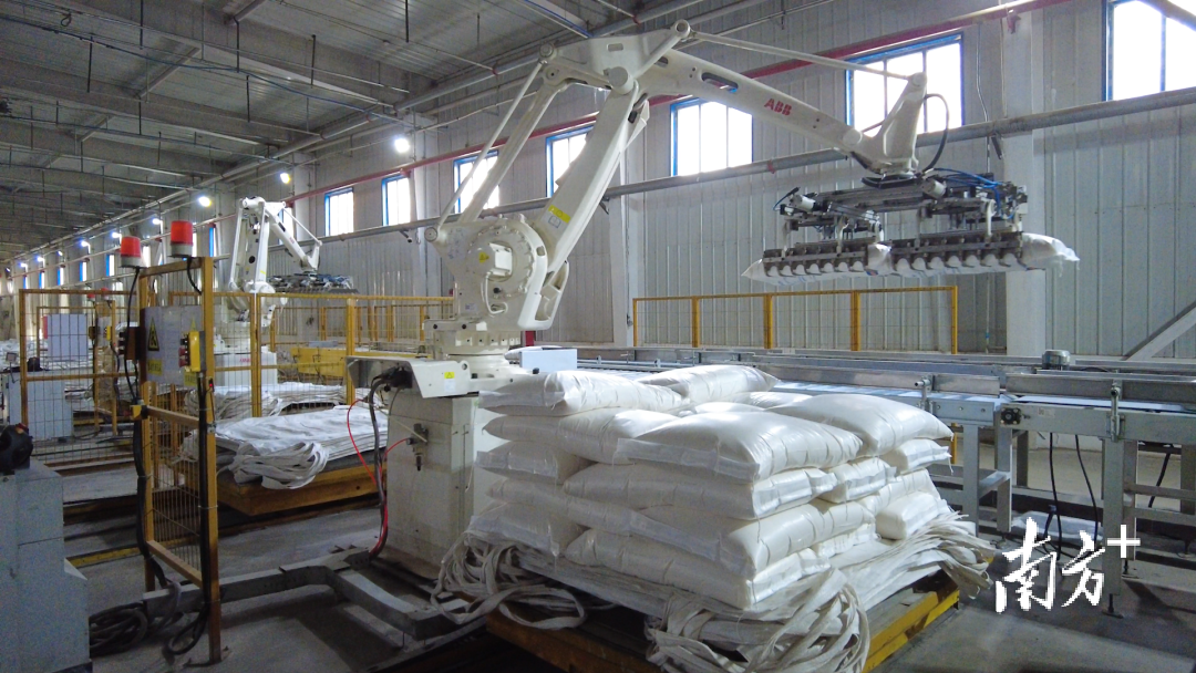 自动化机械臂装叠白砂糖。图源伽师县融媒体中心