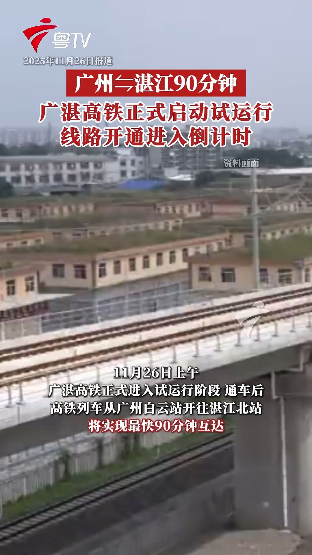 记者获悉,11月26日上午,随着试运行高铁列车从广州白云站开往湛江北站,广湛高铁正式进入试运行阶段,线路开通运营进入倒计时。详情>>
