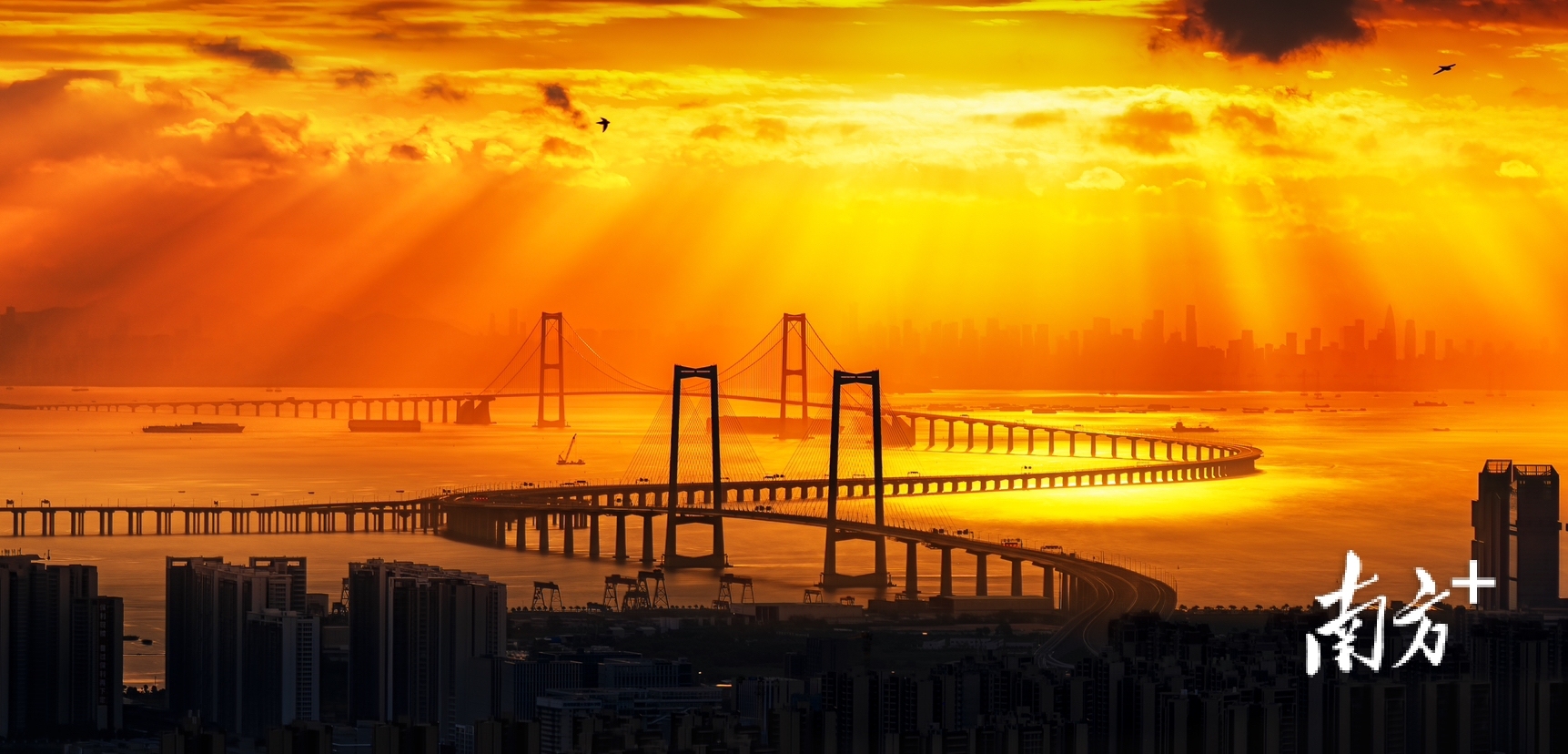 深中通道绝美丁达尔光。南方+拍客 黄晓楠 摄