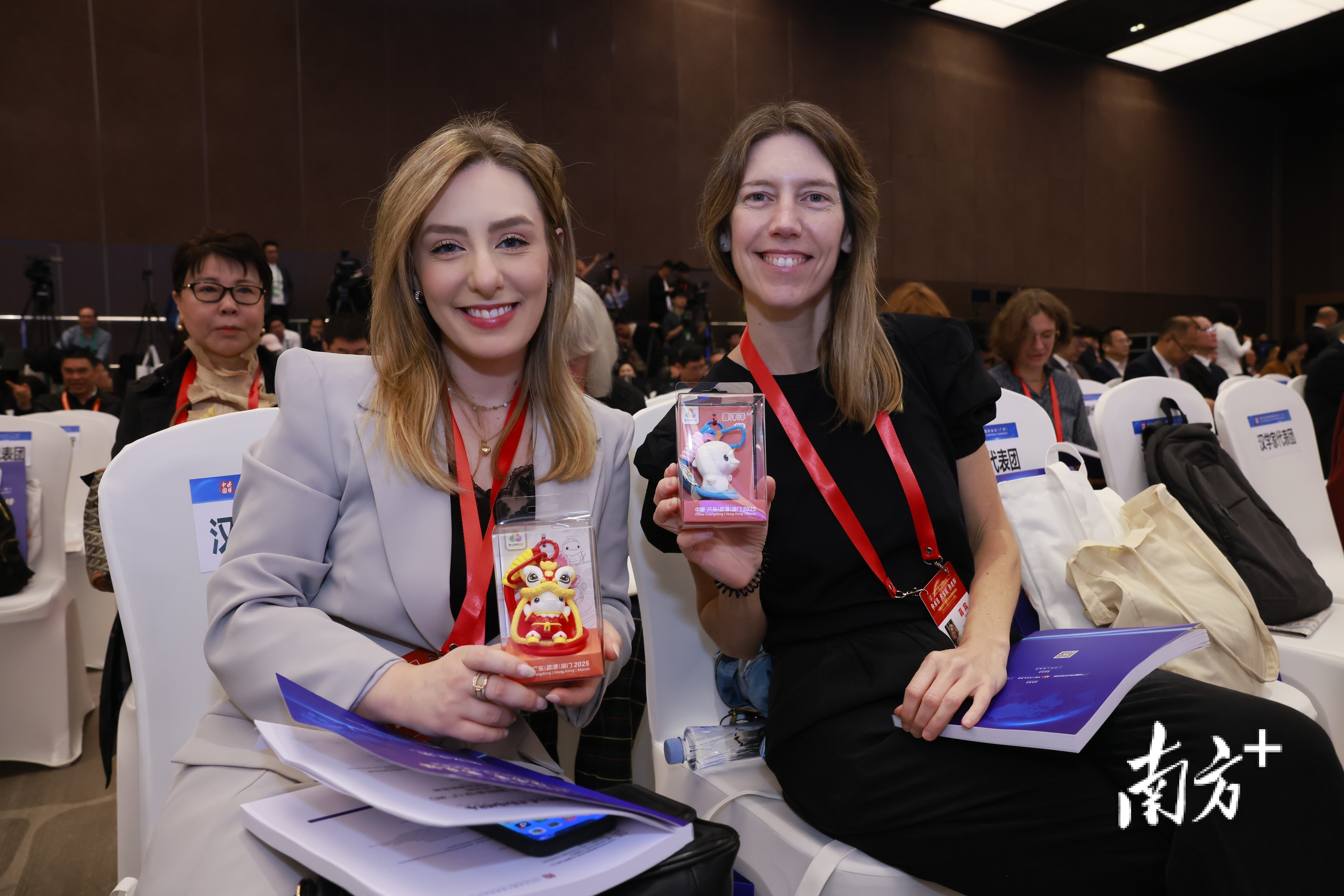 外宾手持十五运会吉祥物挂件。