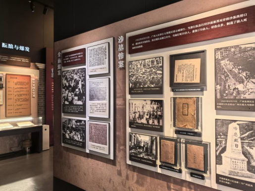 省港大罢工纪念馆内展示的沙基惨案介绍。拍摄:贾筱凝