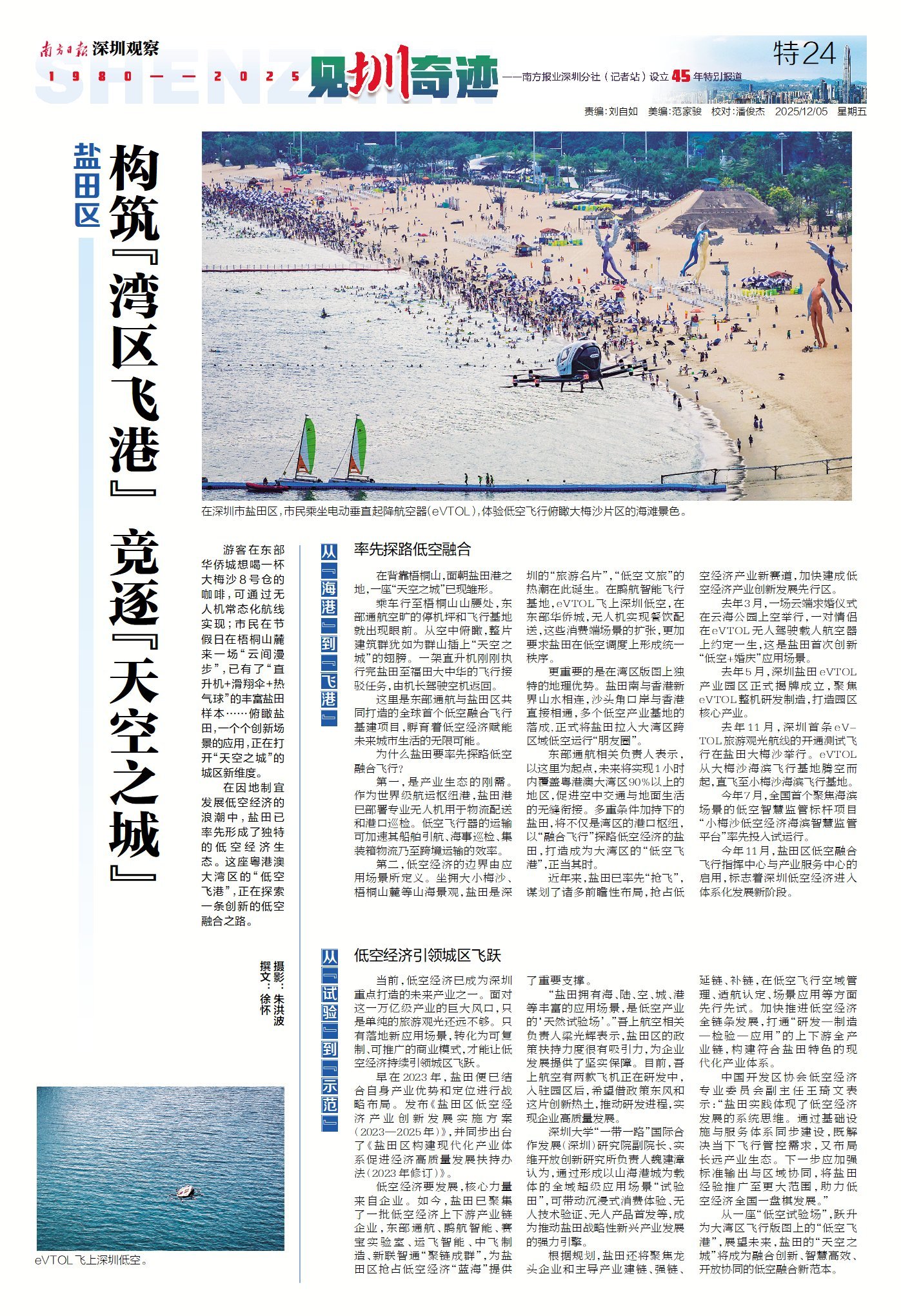 近年来,盐田已率先“抢飞”,谋划了诸多前瞻性布局,抢占低空经济产业新赛道,加快建成低空经济产业创新发展先行区。