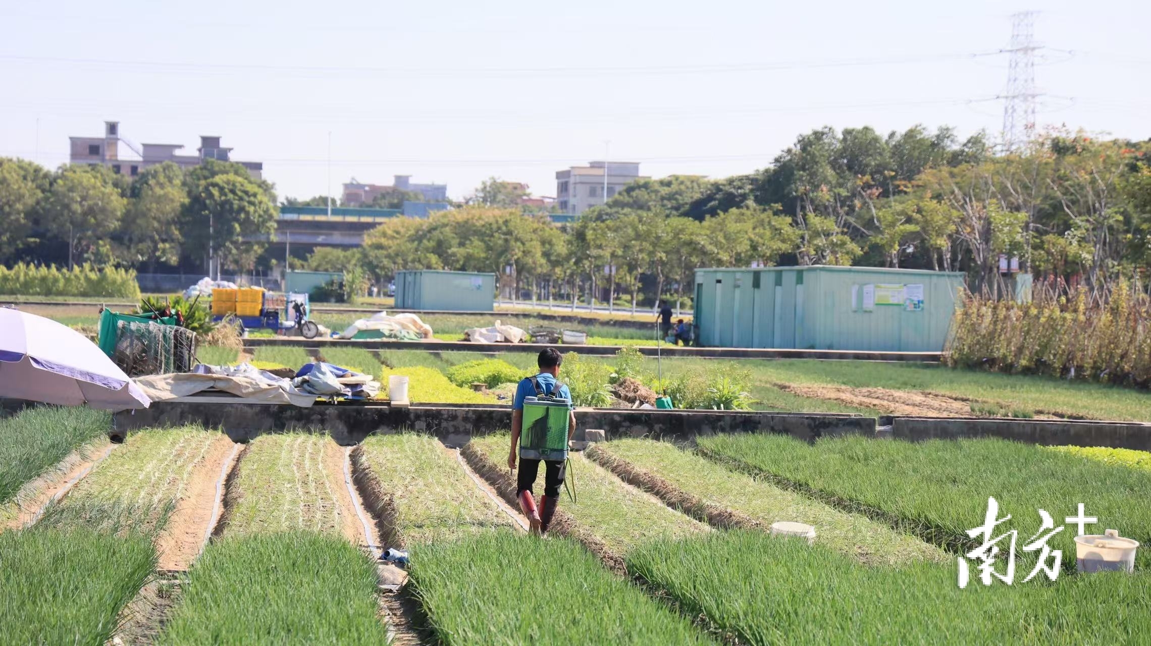 东莞石碣梁家村万达丰蔬菜种植基地,农田里的葱长势喜人。