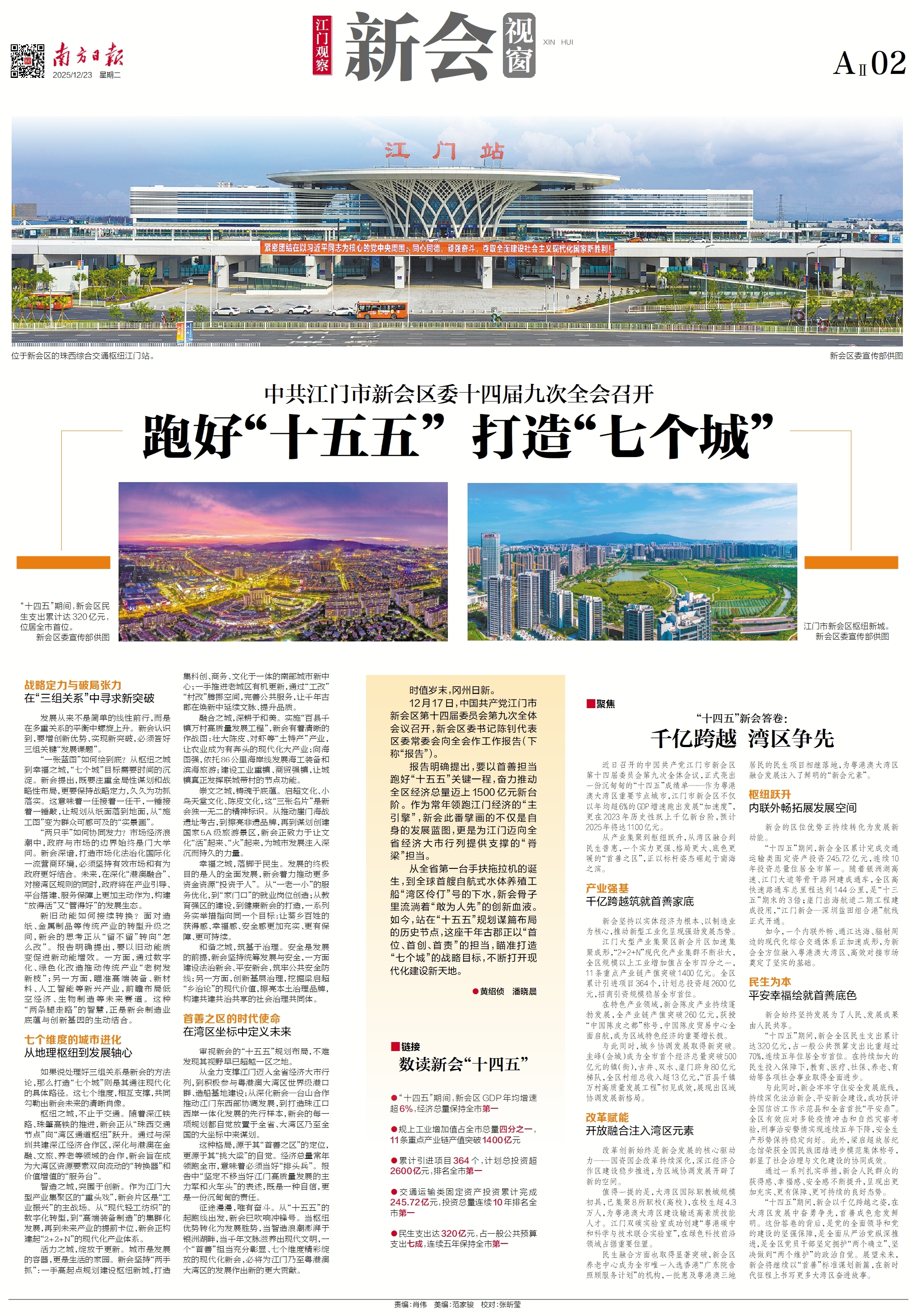 ●“十四五”期间,新会区GDP年均增速超6%,经济总量保持全市第一