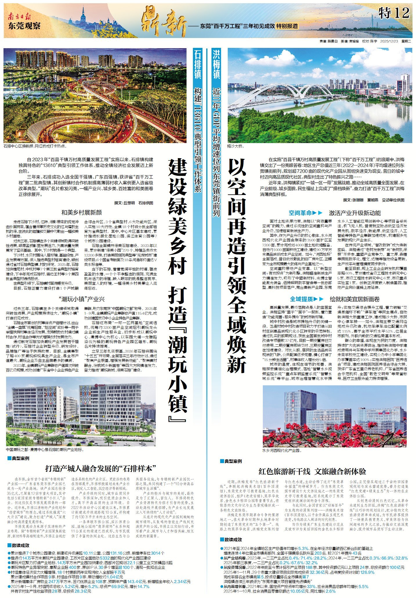 在实施“百县千镇万村高质量发展工程”(下称“百千万工程”)的浪潮中,洪梅镇交出了一份亮眼答卷:地区生产总值近三年(2022—2024年)平均增速位列东莞镇街前列,规划超7200亩的现代化产业园从图纸快速变为现实,昔日的城中村迈向高品质现代社区,典型村走出了特色振兴之路……