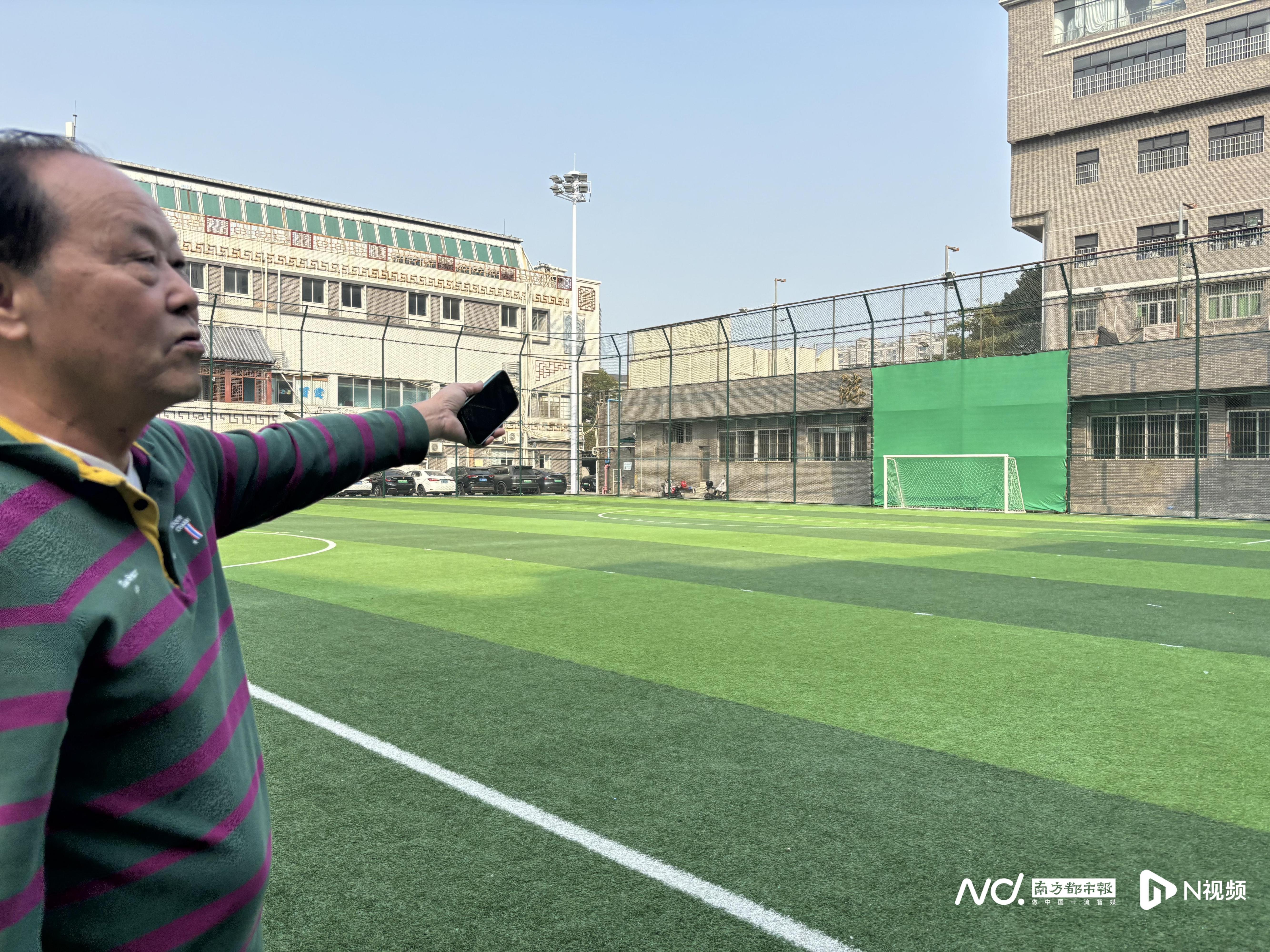 林杰民介绍李昊接受足球启蒙训练时的场地。南都N视频记者林诗妍摄