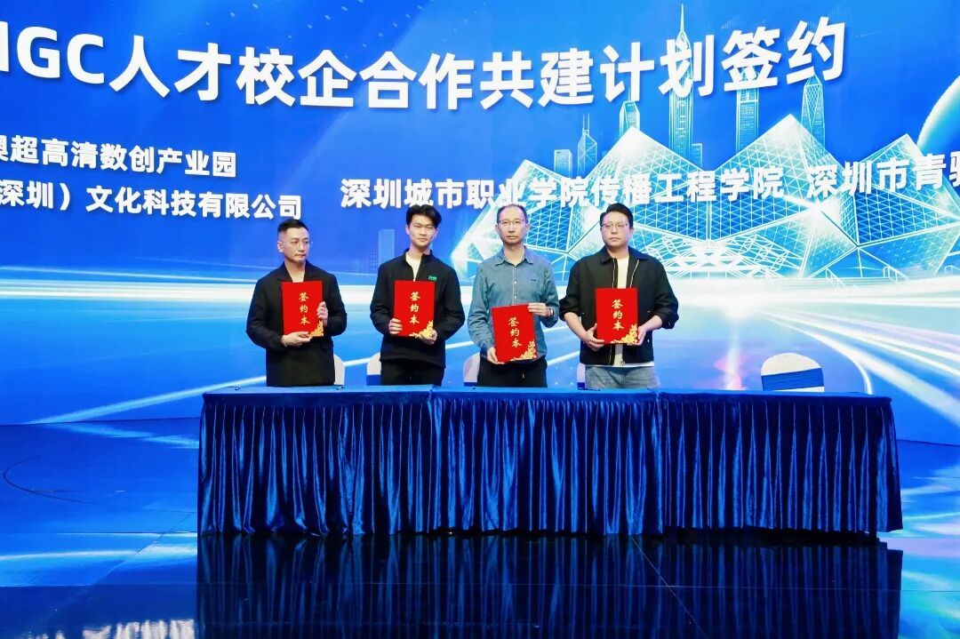 粤港澳超高清数创产业园与腾讯云完成OPC社区+AI数智化业务合作签约,科技巨头与产业平台强强联合,依托园区AI智算中心、8K后期制作中心等硬核资源,为社区注入更强技术力量,推动湾区AI+影视产业数智化升级;首批OPC企业入驻签约分两场完成,香港王启良、高志威、马贤良等资深影视创作工作室,与深圳飞象智能等深圳本土科技影视企业集体入驻,将共享园区XR虚拟影棚、超高清观影审片室等专业场景资源,深港资源双向融合进一步丰富产业生态内涵;电影《航母女兵》场景合作、AI横屏中剧《血战江阴》合作签约落地,两大影视项目将深度依托园区超高清拍摄、虚拟制作等设施优势开展创作,为大湾区影视精品创作注入新活力;AIGC人才校企合作共建计划签约顺利完成,肝帝文化科技、肝智教育科技与深圳城市职业学院、青骊影视文化传媒携手,将以园区软硬件资源为实训作为底座,搭建高校与企业人才对接桥梁,为产业培育复合型专业人才。