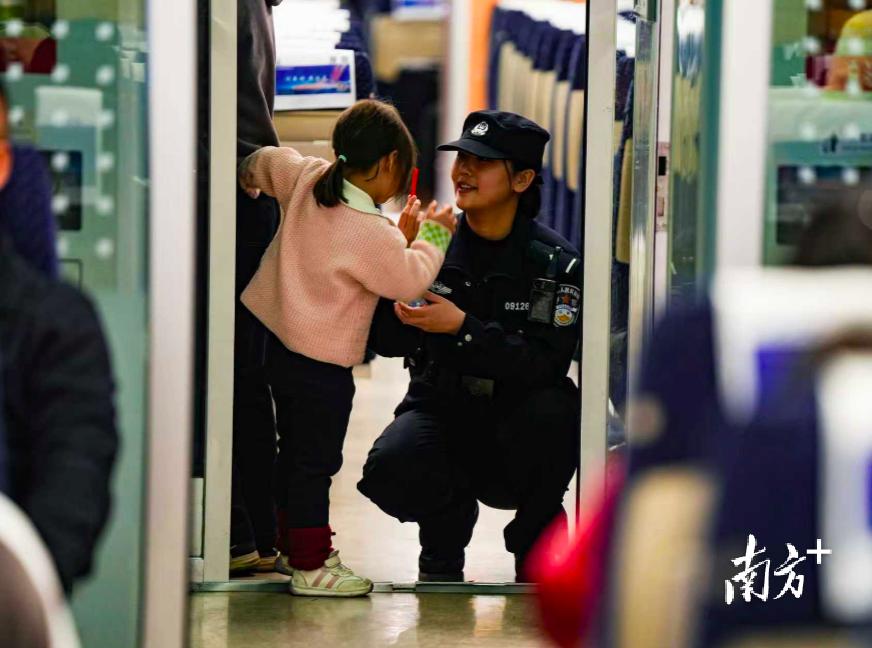 碰到在过道奔跑的孩子,她轻声提醒“回到座位更安全”。广铁公安 供图