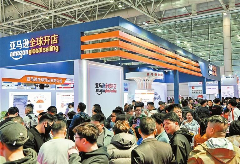 Amazon's booth is packed with visitors during the 5th China Cross-Border E-Commerce Trade Fair held in Fuzhou, Fujian Province, last March. Xinhua