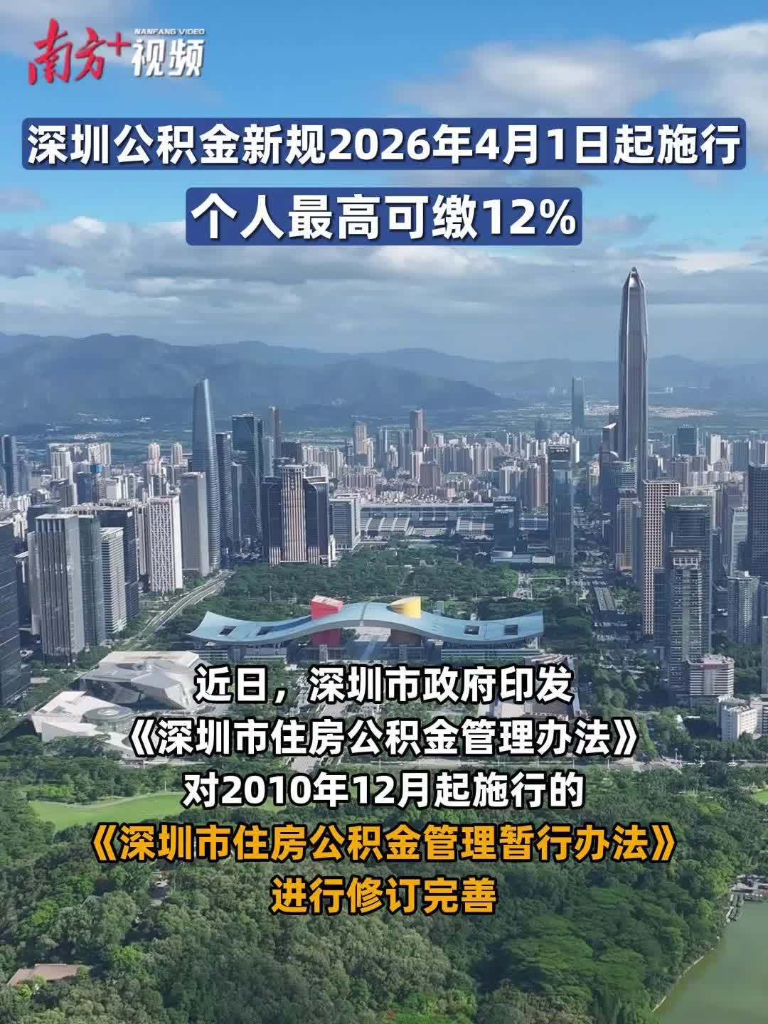 深圳公积金新规2026年4月1日起施行 个人最高可缴12%
