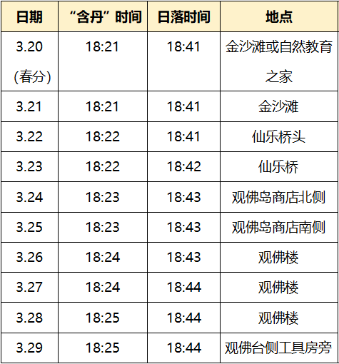 3月27日,太阳落在卧佛口中,或稍偏下唇。3月28日,太阳落在卧佛口中,或稍偏上唇。(以上天文数据由广州市五羊天象馆常务副馆长李建基提供。)