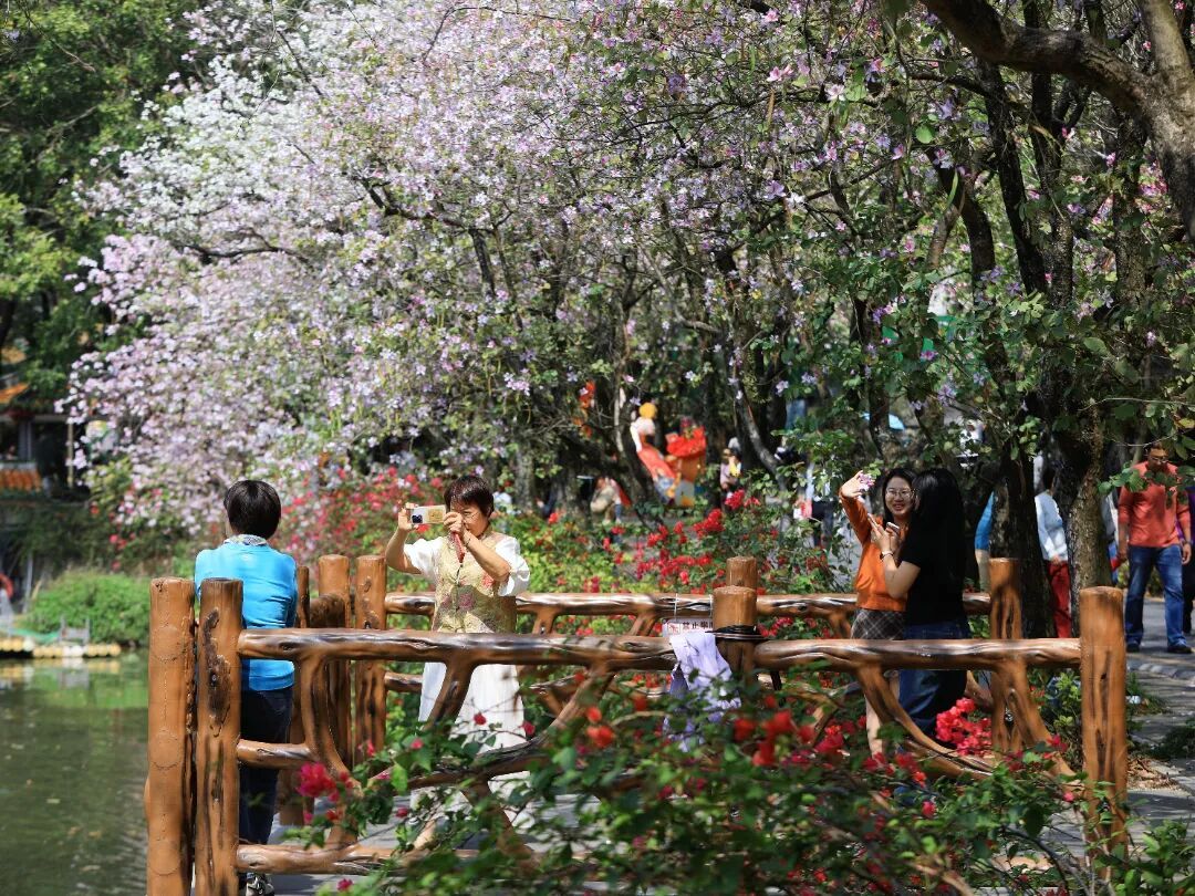 宫粉紫荆、樱花轮番绽放