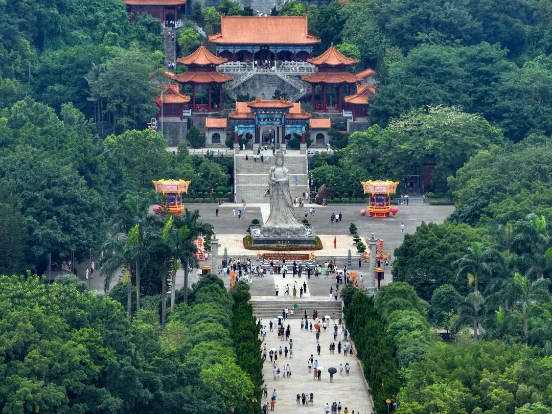 这座国家AAAA级旅游景区,融合明清宫殿建筑精髓与岭南文化特色。背倚大角山,面朝伶仃洋,每年吸引超300万游客前来祈福观光。